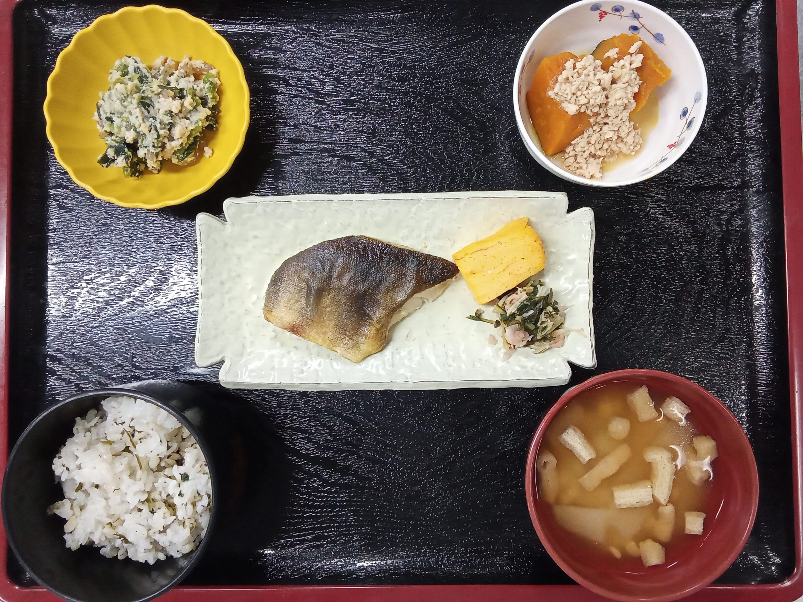 2/5の温菜は「南瓜のそぼろ煮」でした。使用した南瓜は約7kgと多かったため、南瓜とそぼろをそれぞれ別鍋で煮て、最後に混ぜ合わせるようにしました。南瓜はとても柔らかく煮えており、ご利用者からも食べやすくて美味しいというお言葉を頂けました。