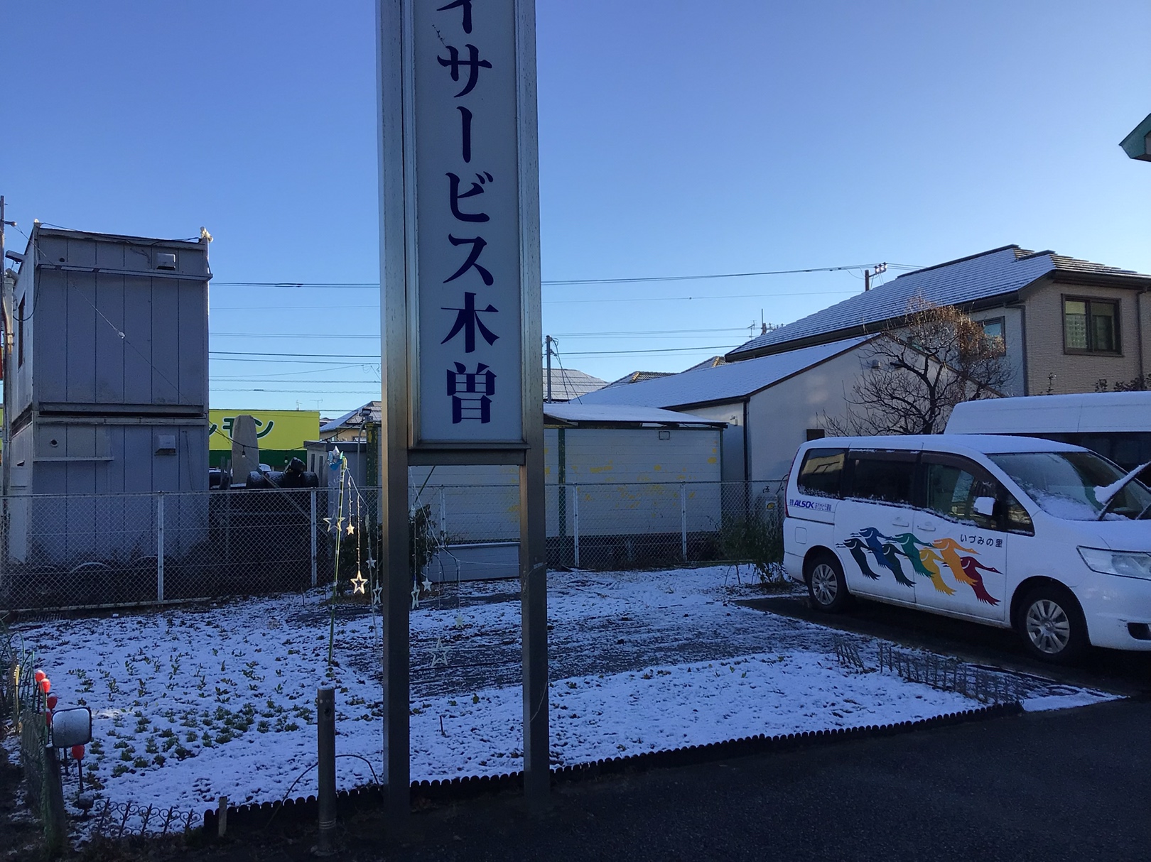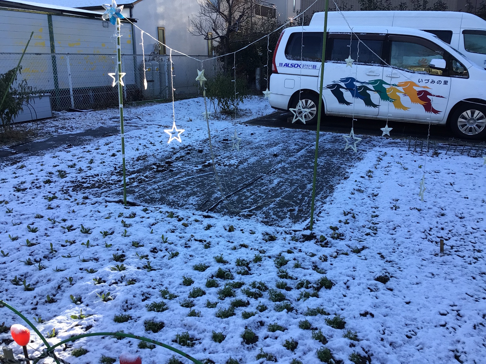 昨日の夜から雪が降って、デイサービスも雪化粧です。