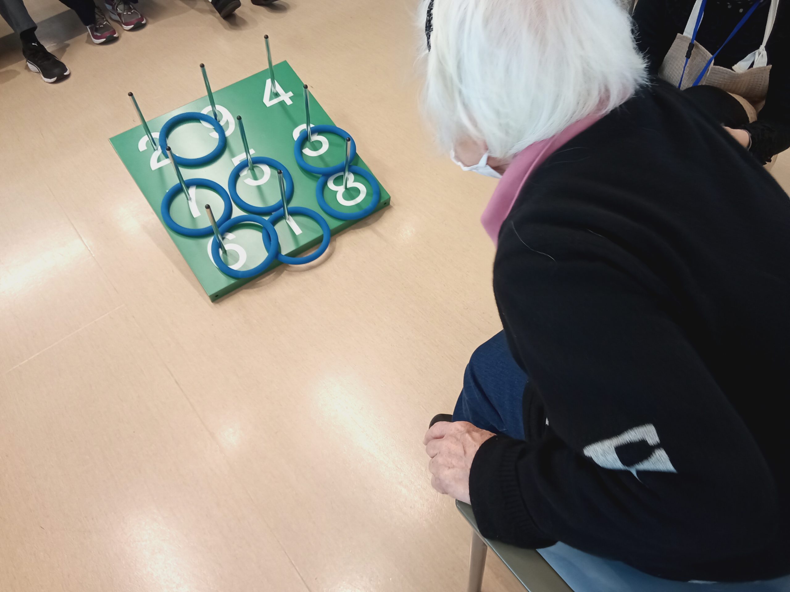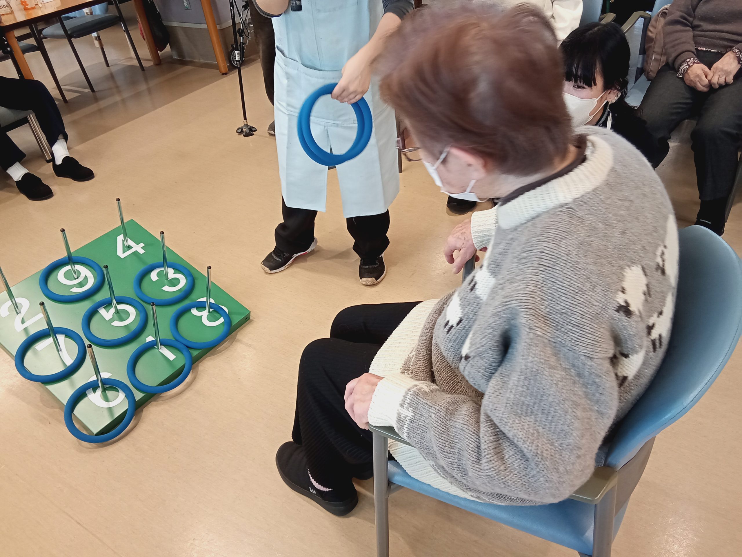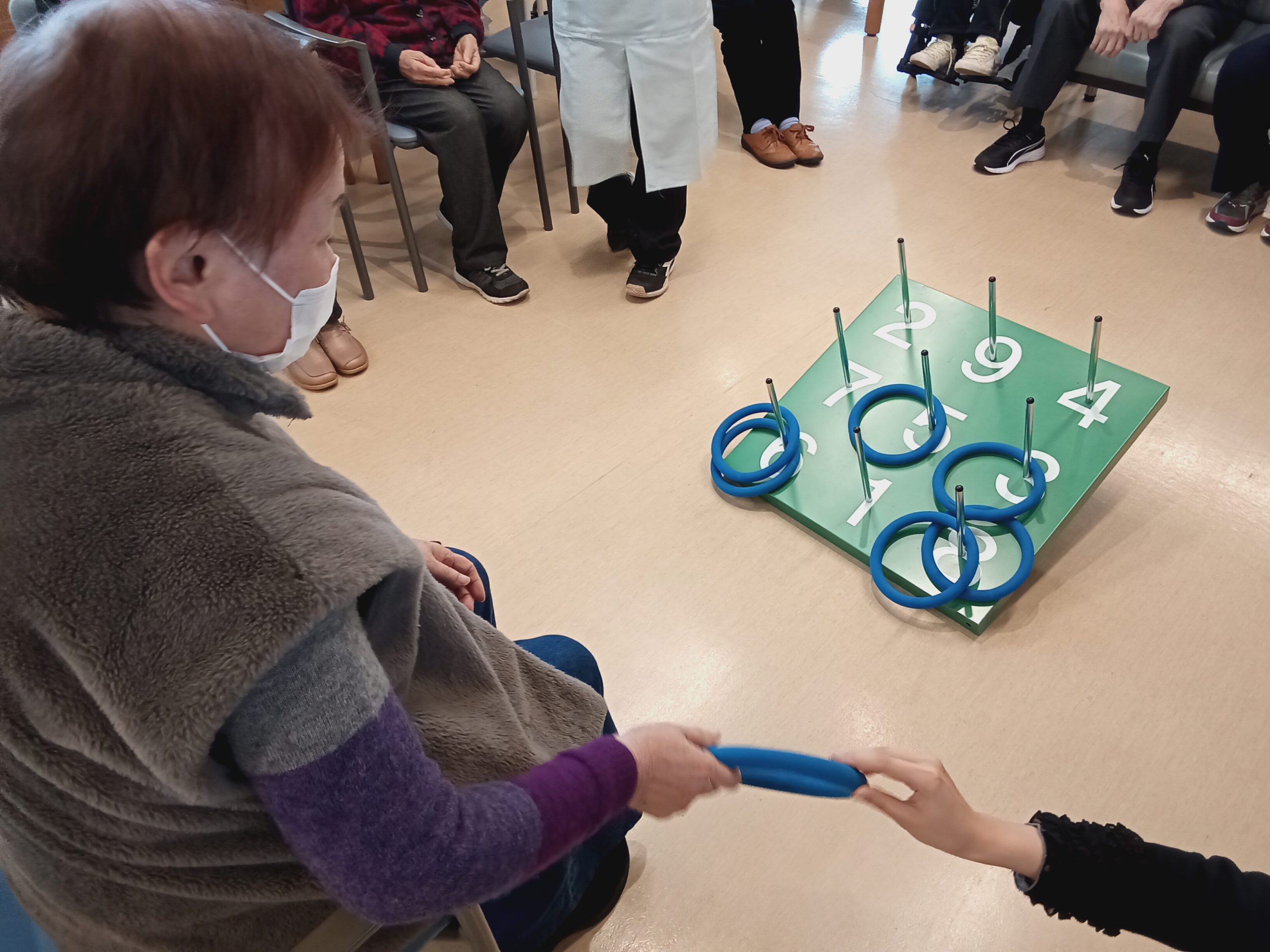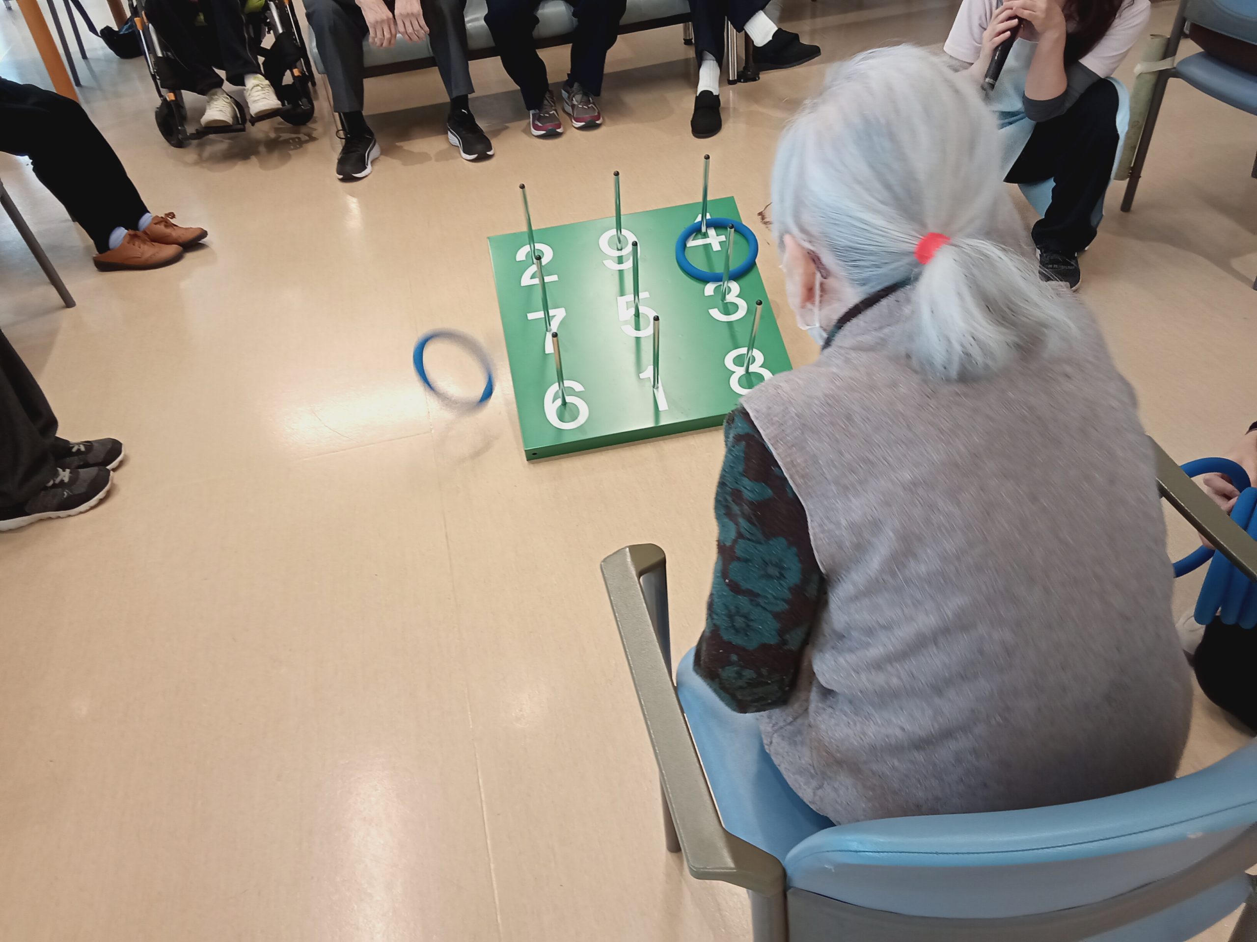 みんなで輪投げをしました! ご利用者からは、「最初はなかなか入らなくて苦戦したけど、コツを掴んだら連続で的に入って嬉しかったです。 」「体を動かすとリフレッシュできて、とても楽しい時間でした。」とのお言葉がありました。