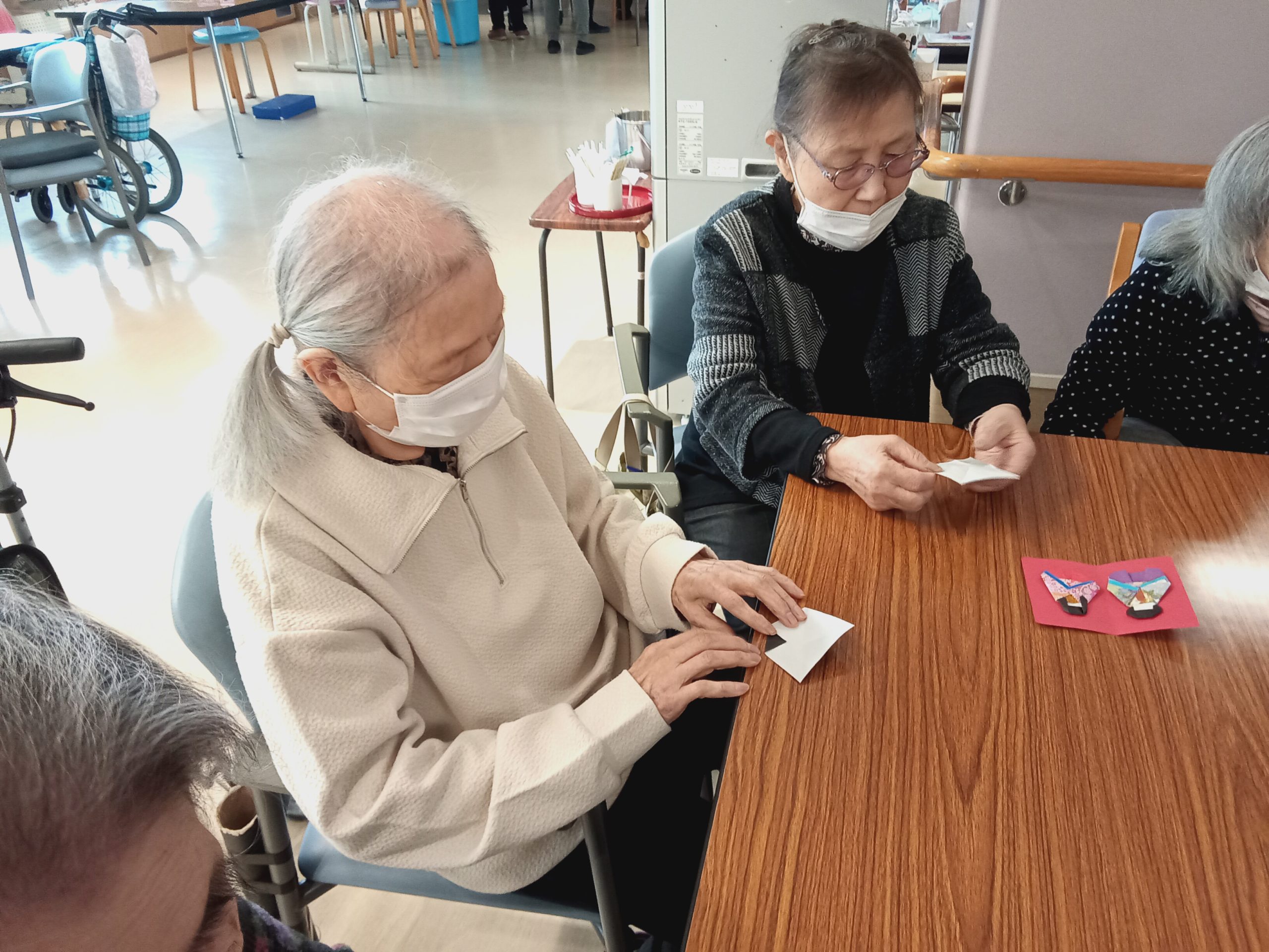 折り紙を重ねたり、少し細かい作業もあったりしましたが、先生と一緒に最後まで一生懸命に折ることができました。