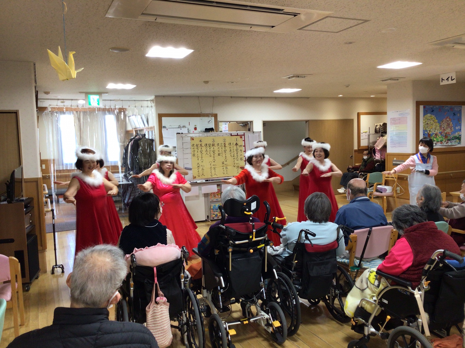 踊りの演目で鑑賞されたり、一緒に踊りの振りをされてご利用者も楽しまれていました。