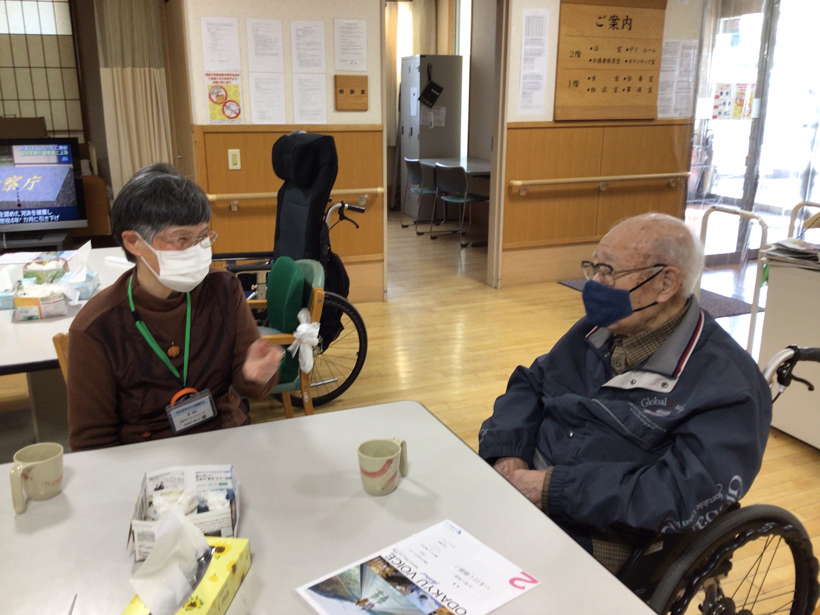 本日、傾聴ボランティアの硲(はざま)様が来所され、ご利用者達とお話が盛り上がっていました。