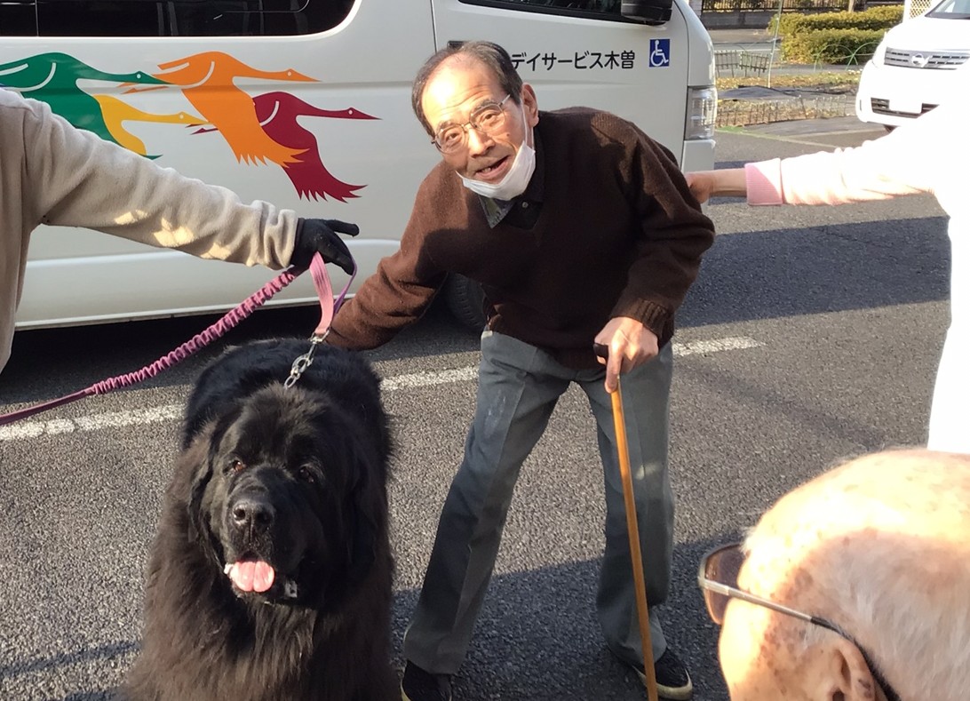 地域の方が犬の散歩中にデイ木曽に寄ってくださり、ご利用者達と交流されていました。