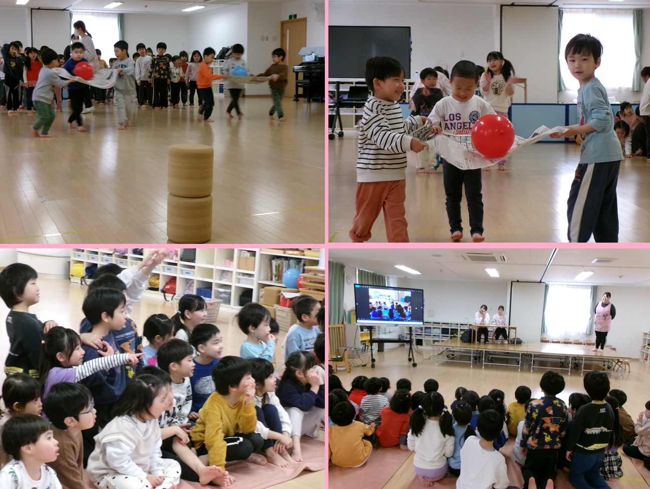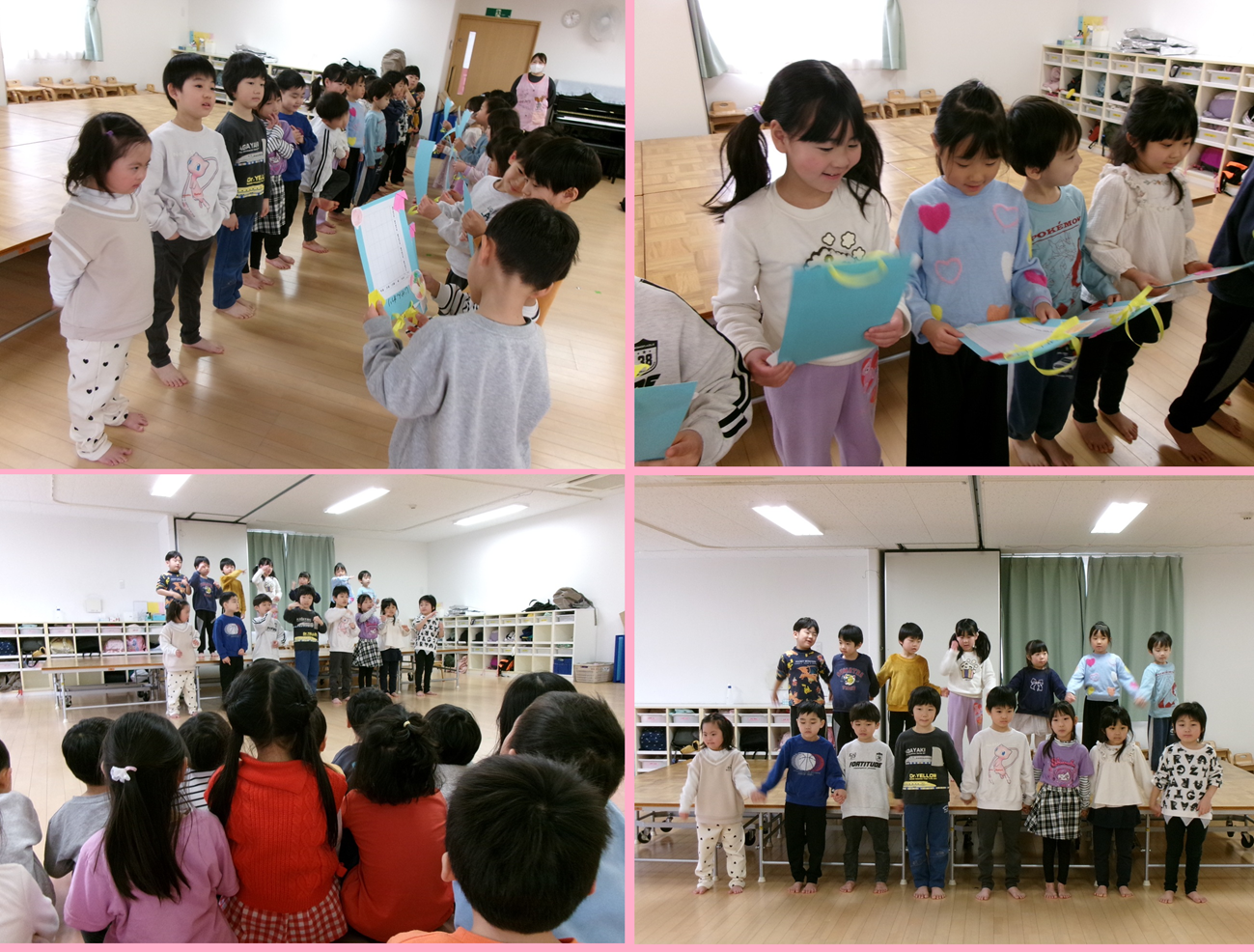 いるか組(3歳児)、しろくま組(4歳児)、くじら組(5歳児)でお別れ会をひらきました。