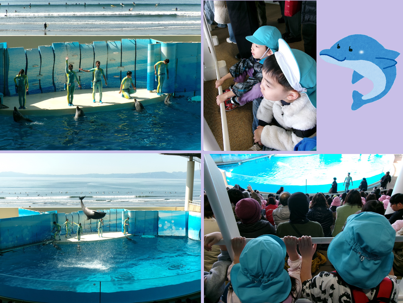 イルカショーは、イルカのジャンプや回転などを見て子どもたちは思わず拍手をしていました👏