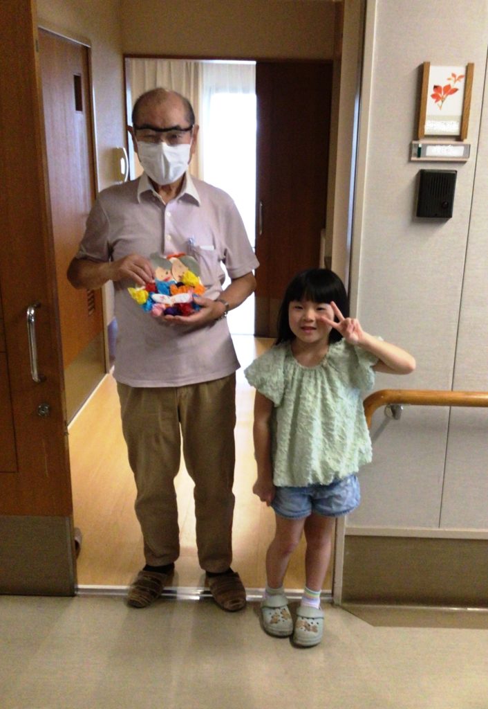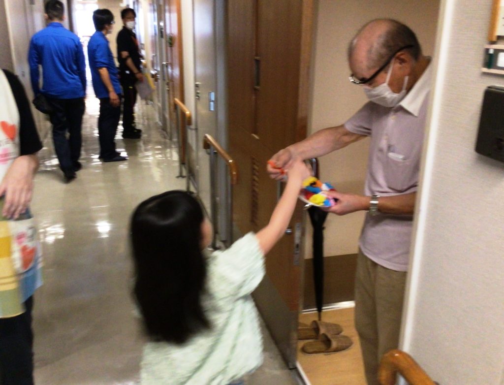 お誕生日を迎えられたご利用者へ、保育園の園児が可愛らしいプレゼントを持って訪問してくれました。