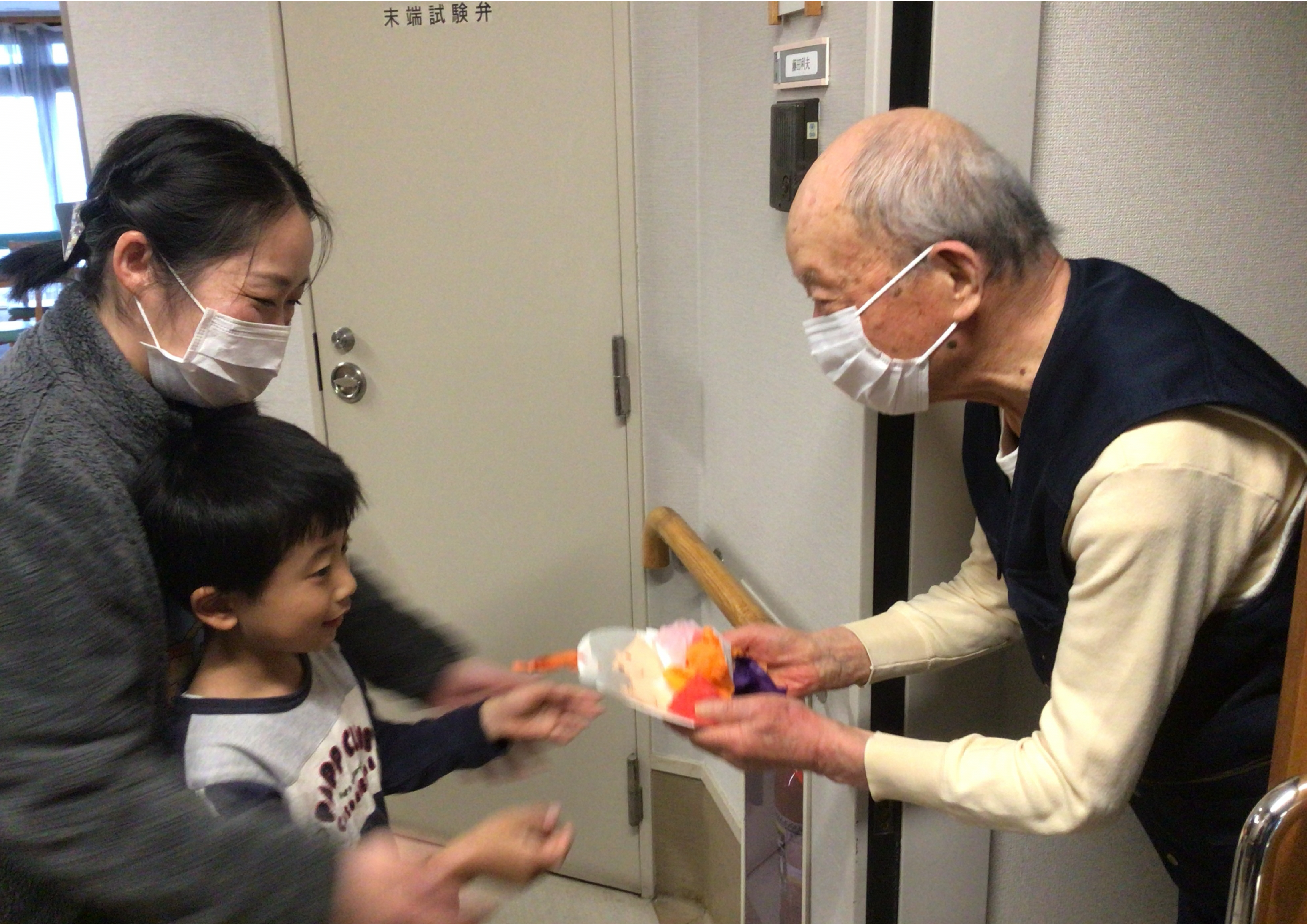 なごみ保育園の園児さんがケアハウスご入居者のお誕生日でお祝いに来てくれました。