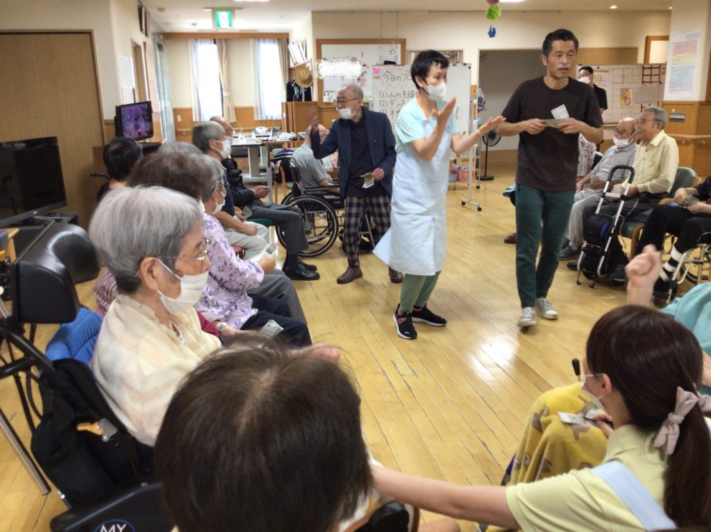 今日は約2ヶ月ぶりにスタンドアップみつお様が来てくださいました⭐山の手線ゲームをしたり、新聞を使ったギャンブルゲーム、歌を歌ったりと笑顔の絶えない1時間でした♪