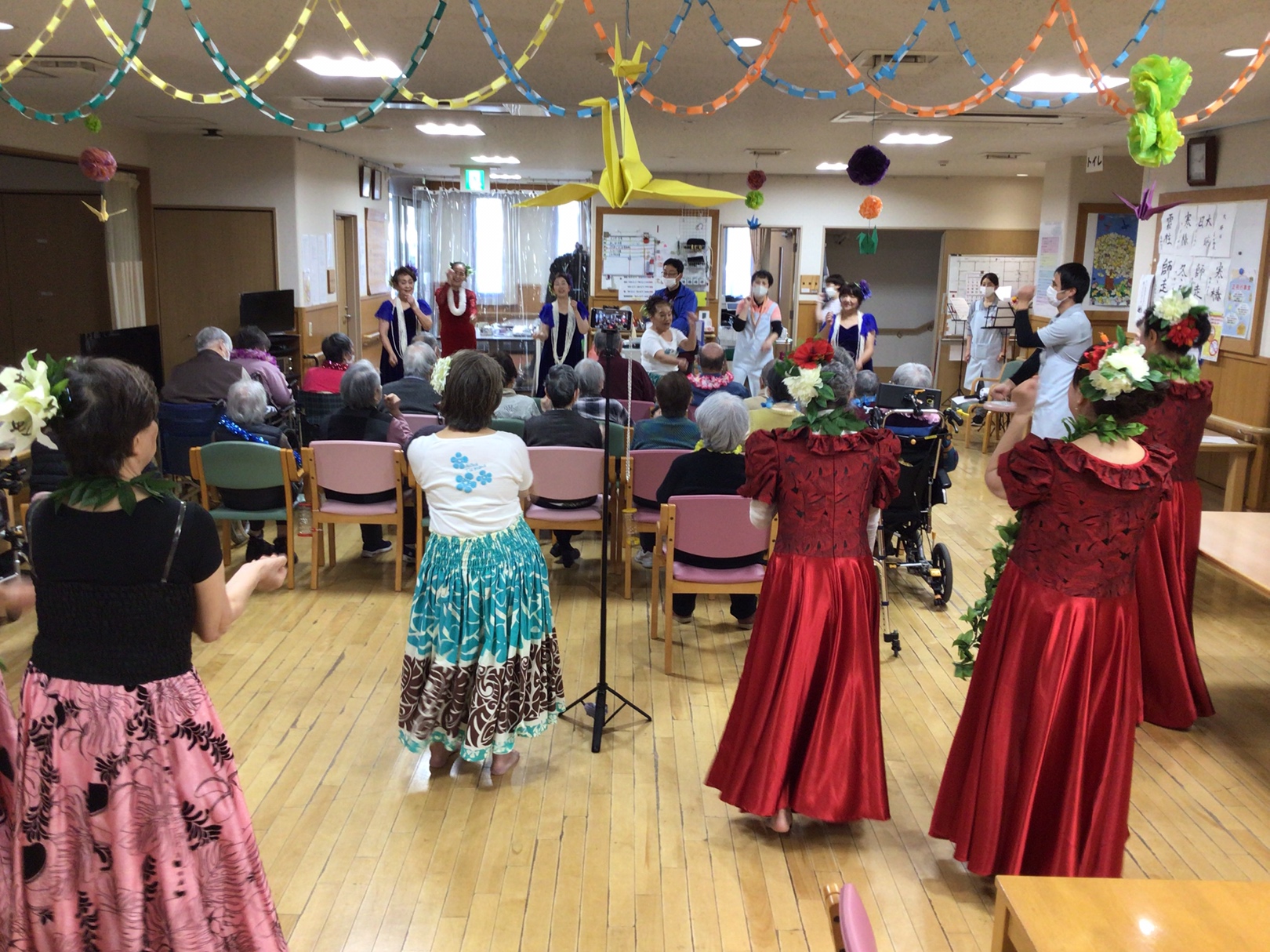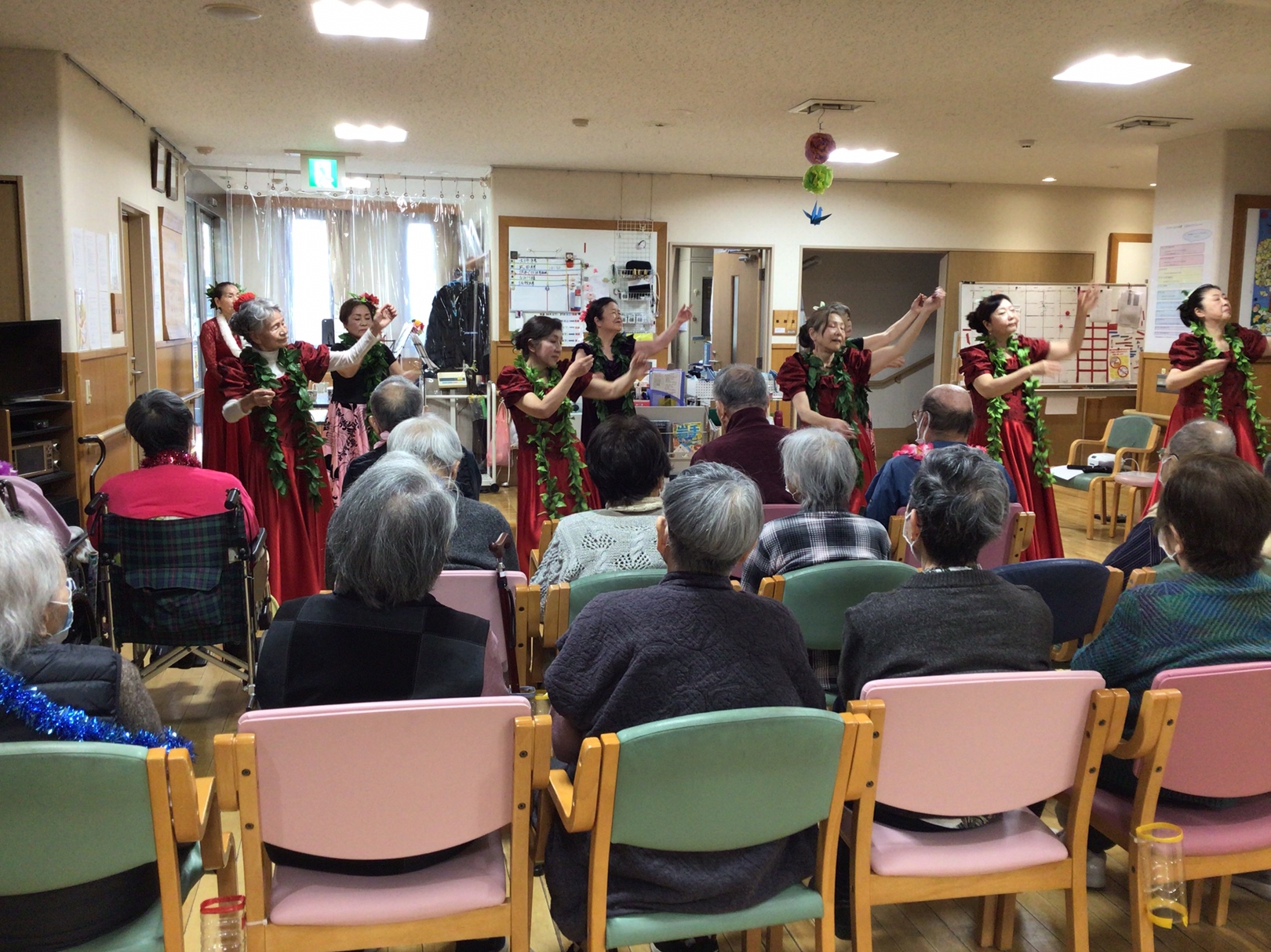 午後からボランティアでプルメリア様が来てくださいました。素敵な音色としなやかなフラダンスにご利用者も職員も癒されました⭐