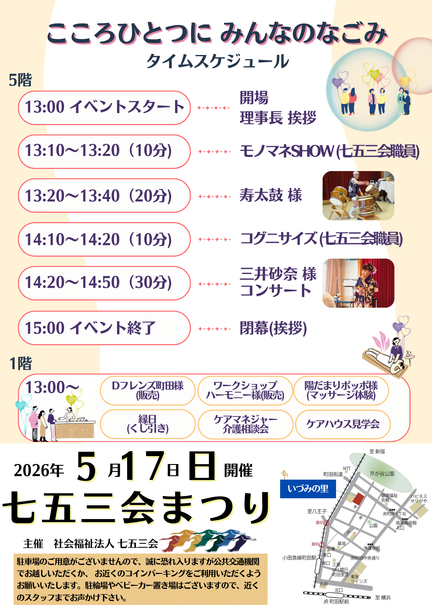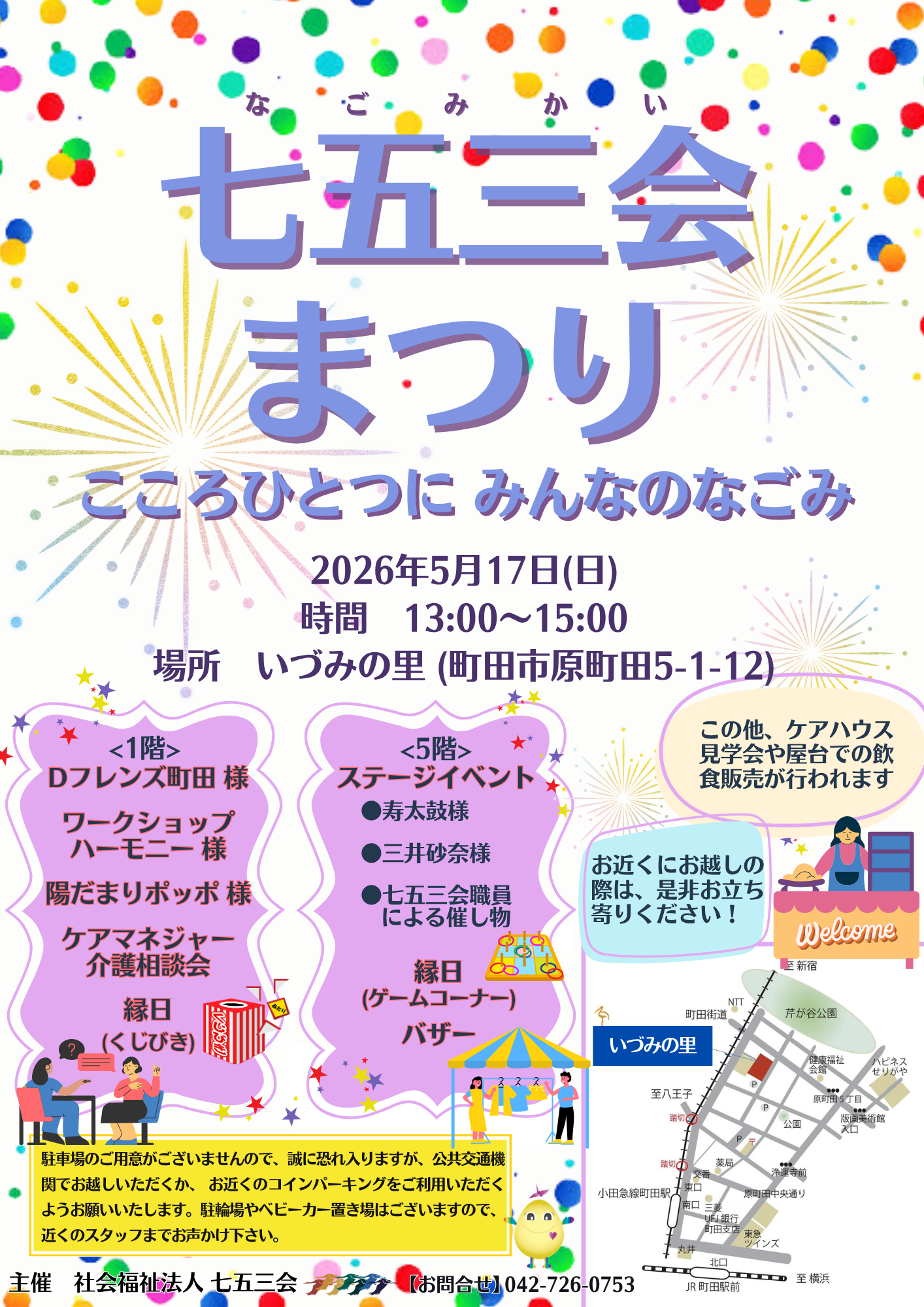 5月17日(日)いづみの里にて「七五三会まつり」を開催いたします。