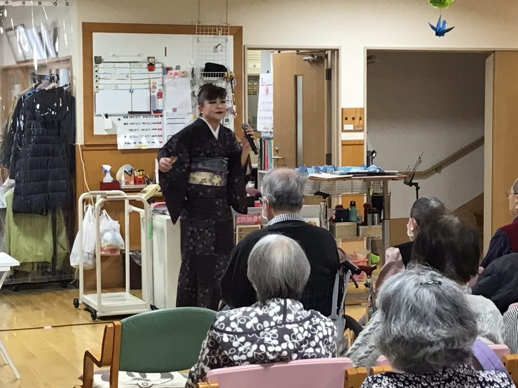 三井砂奈様コンサート🎶 2025.11.13デイサービス木曽 三井砂奈様のコンサート🎶にて、歌唱を披露していただきました。 また、途中の曲目や終盤の曲目では、 利用者様も一緒に歌い🎤盛り上がっていました♪ 戻る