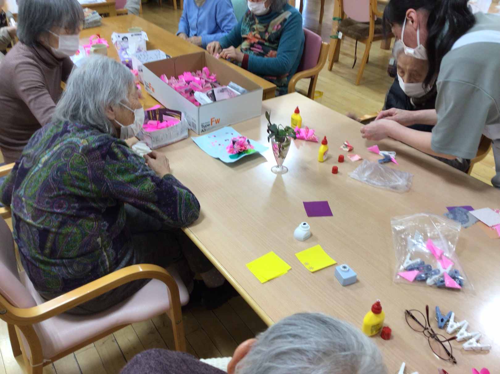 【デイサービス木曽】本日のレクリエーション 2026.02.28デイサービス木曽 外での歩行訓練中、近くの歩道で彼岸桜が咲き始めていました。 レクリエーションでは桜の立体折り紙を作成し、皆様楽しまれていました。 戻る