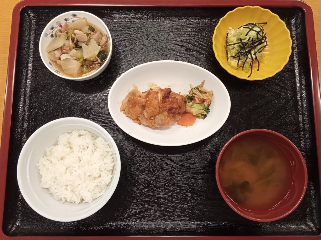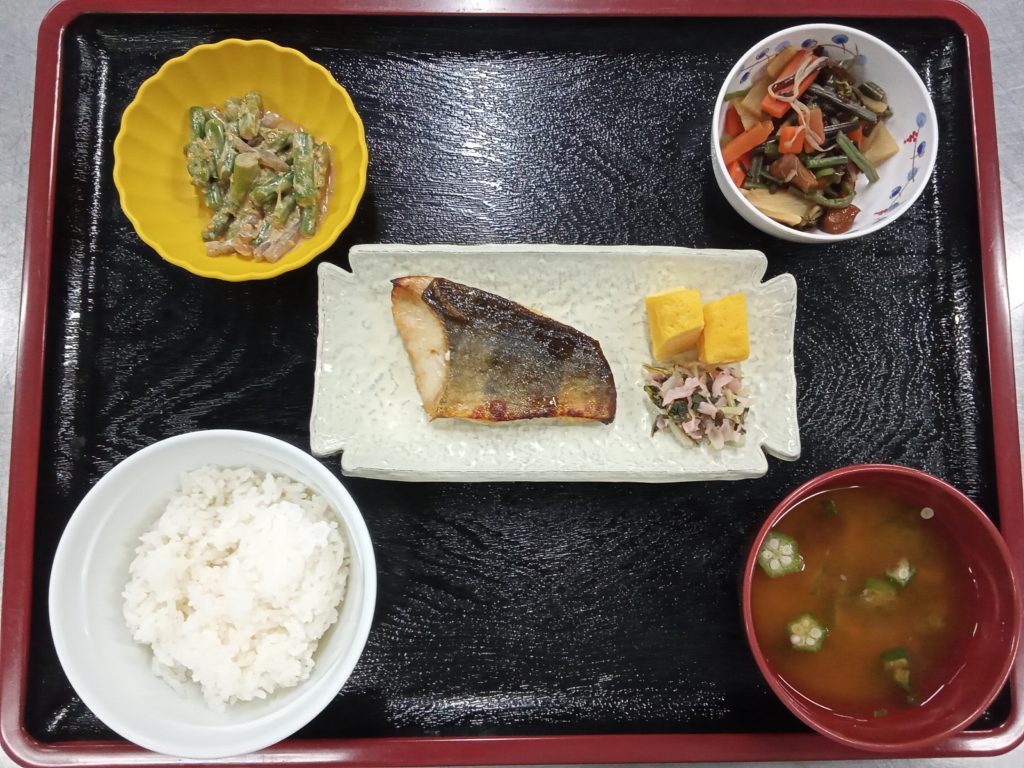 10/8の主菜は「ほっけの照り焼き」でした。普段は照り焼きのたれを作ったり、市販のものを使ったりするのですが、本日は焼き肉のたれをベースに調味料を加えて特製だれを作りました。焼き肉のたれを使っているため、普段より香ばしい仕上がりになりました。