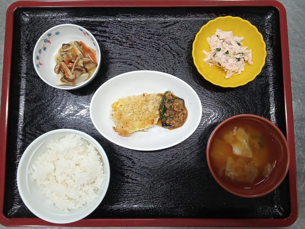 10/10の主菜は「白身魚のパン粉焼き」でした。白身魚は種類によって特有の臭みがあるので、今回は下味にはクレイジーソルトを使いました。その後、マヨネーズを塗って昆布茶を混ぜ込んだパン粉をまぶして焼き上げました。クレイジーソルトにマヨネーズ、昆布茶を使い臭みを抑えたため、魚は完食されている方が多かったです。