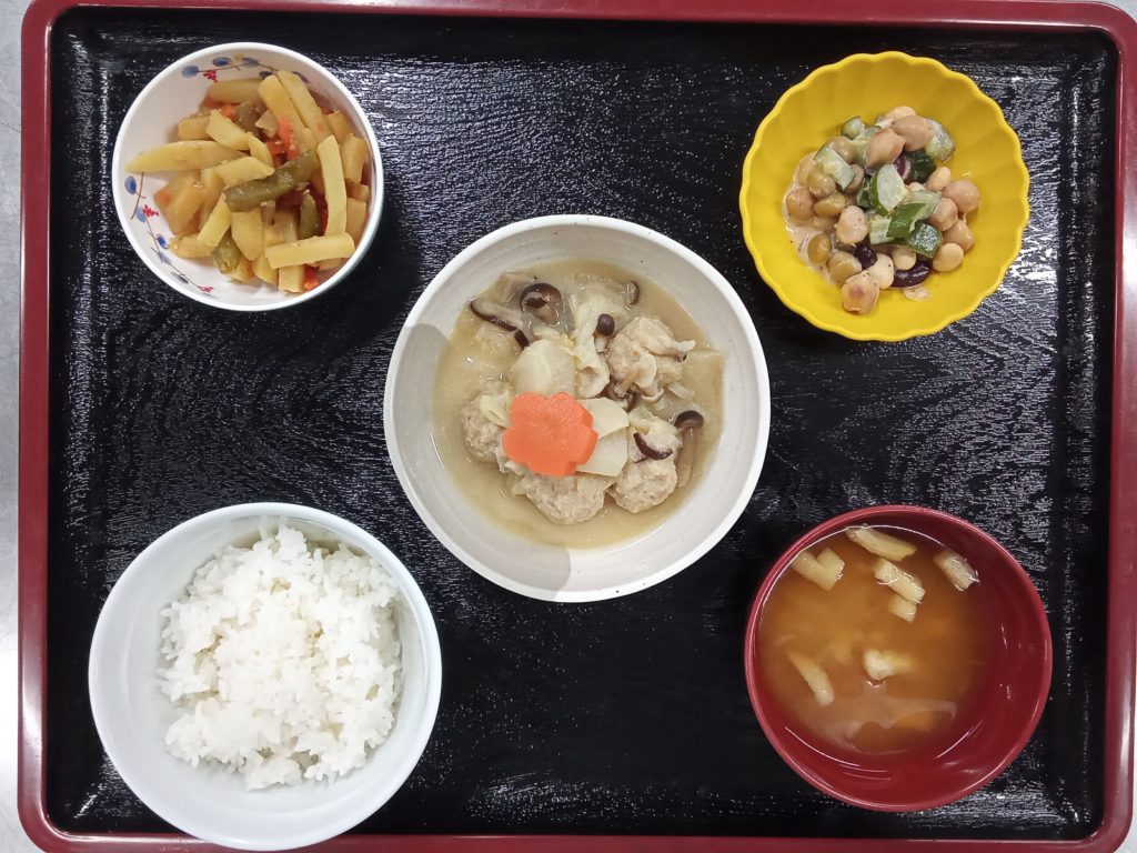11/27の冷菜は「アボカドのツナマヨサラダ」でした。いづみの里では冷凍のアボカドを使用していますが、完全に解凍すると和える際に形が崩れてしまうため半解凍状態で調理しています。そのため作っている際は手が冷えて大変ですが、皆様が食べるころには程よく溶けていてアボカドの食感が楽しめたのではないでしょうか。ちなみに、普段はマヨネーズ単体で味付けしますが、本日は少しアレンジして辛子マヨネーズで味付けをしました。