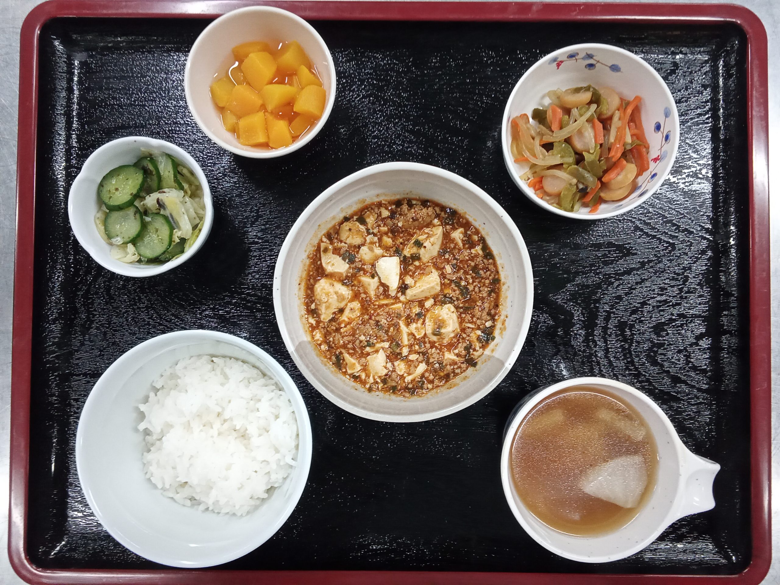 12/7の冷菜は「キャベツとりんごのコールスロー」でした。りんごのシャキシャキした食感はご利用者にとっては硬いと感じられるため、なるべく薄く切って提供しました。りんごの甘みが加わることで、普段のコールスローとは違った味わいを楽しむことができました。
