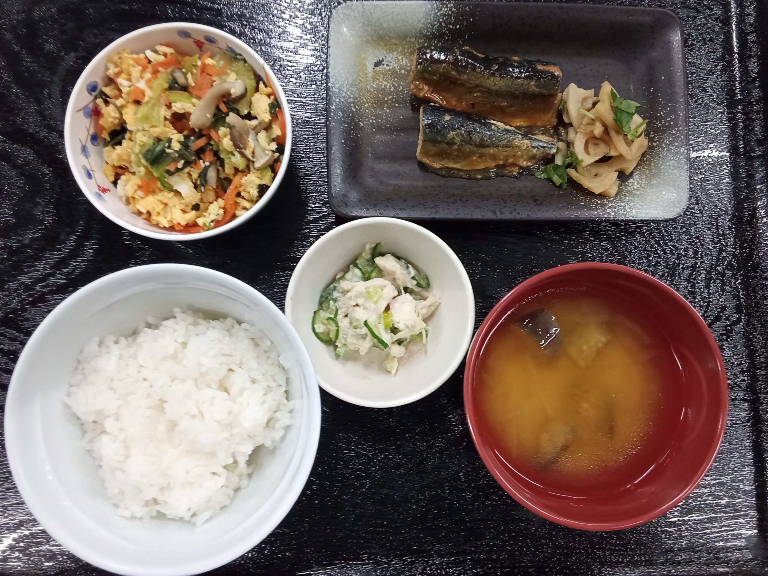 12/6の主菜は「秋刀魚の甘露煮風」でした。甘露煮とは砂糖、みりん、醤油で照りが出るくらい煮た料理を指します。魚だとイワシで作られることが多いですが、イワシは小骨が多く調理も大変なので本日は秋刀魚を使いました。一時期は手に入りにくかった秋刀魚ですが、最近はスーパーでも見かけるようになり、いづみの里でも徐々に提供回数が増えてきました。