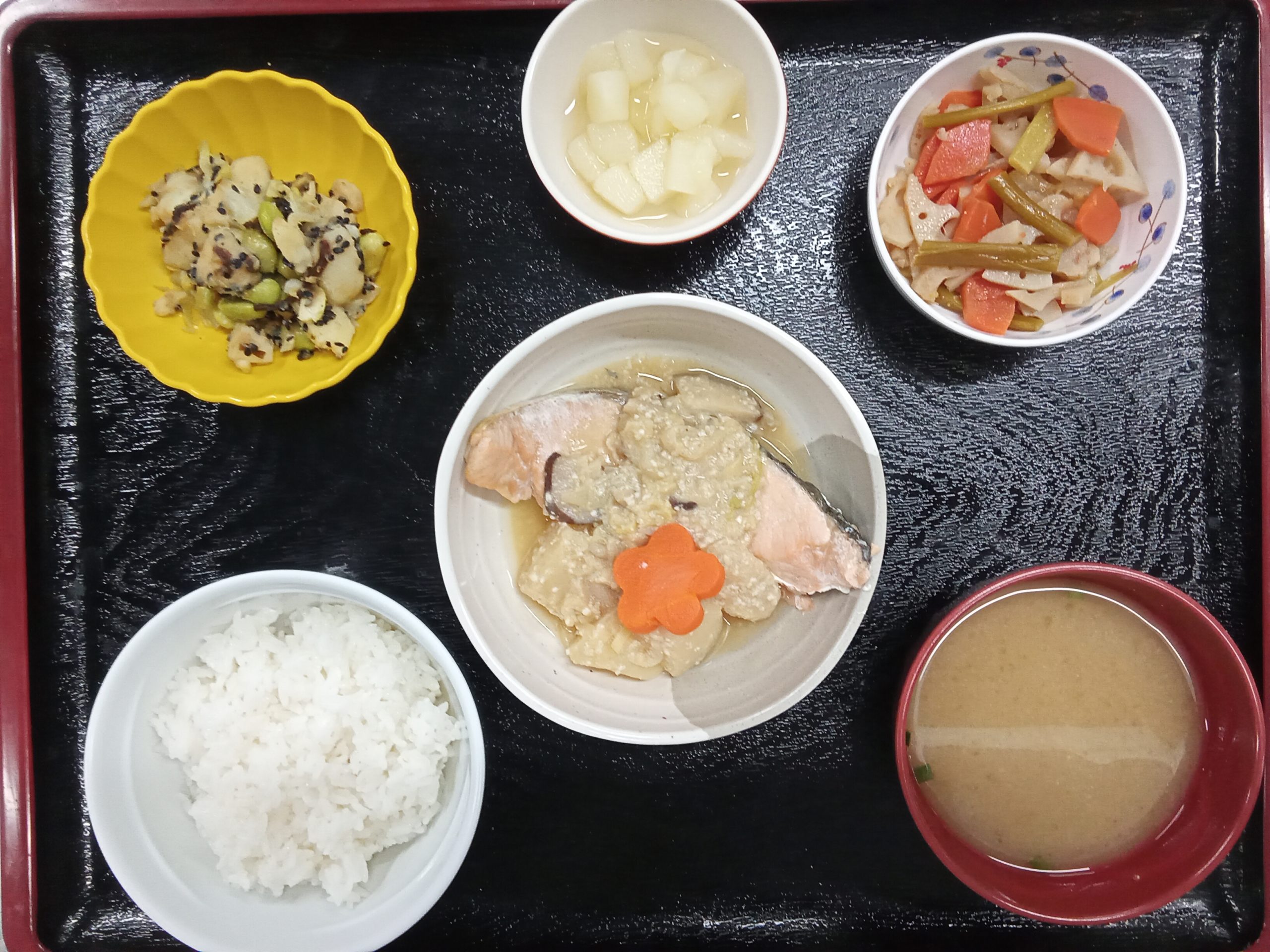 2/23の冷菜は「和風ポテトサラダ」でした。ポテトサラダといえばマヨネーズ味が一般的ですが、本日は和風なので塩昆布で味付けしました。じゃがいもと塩昆布は相性がよく、さっぱりと食べられました。