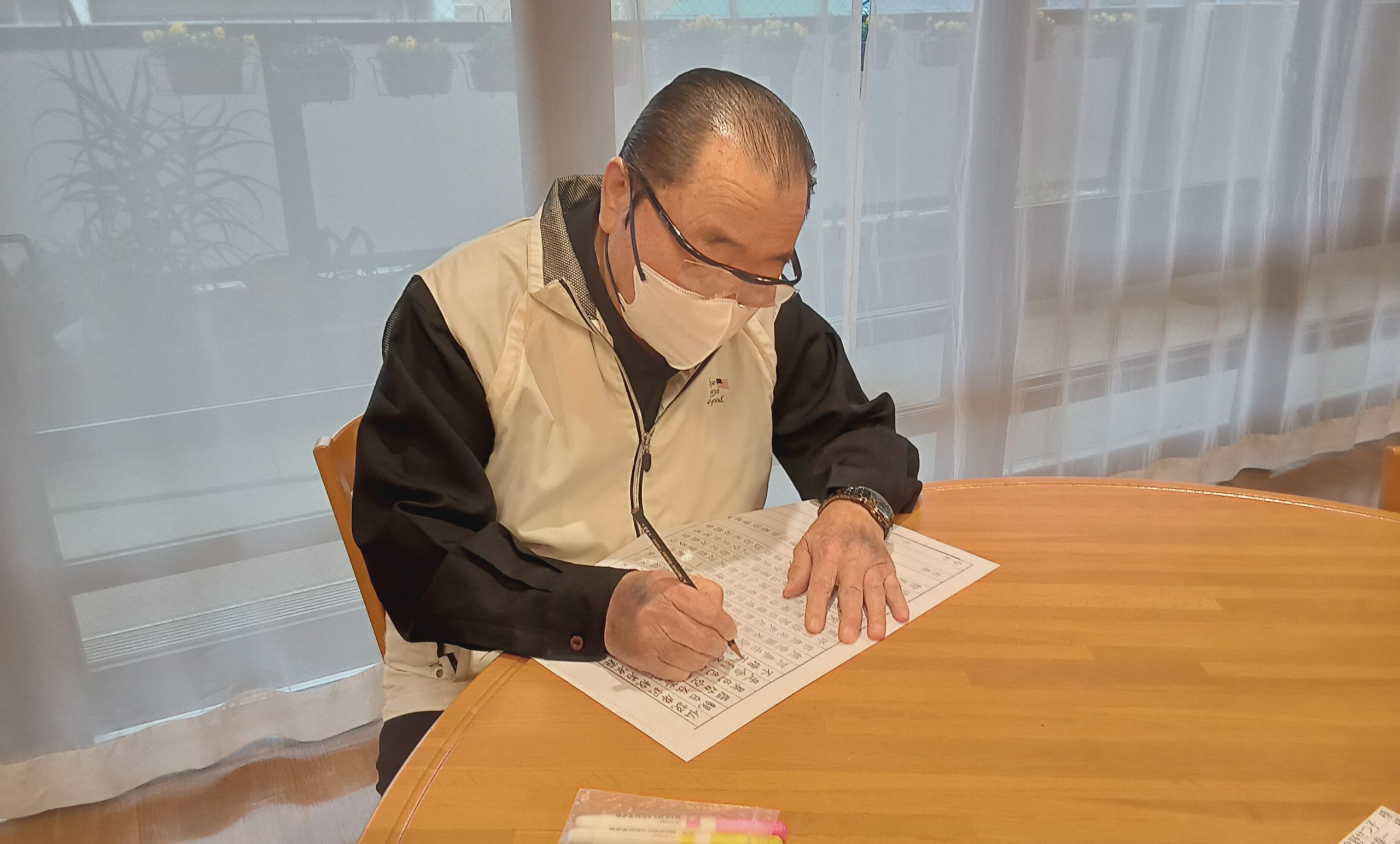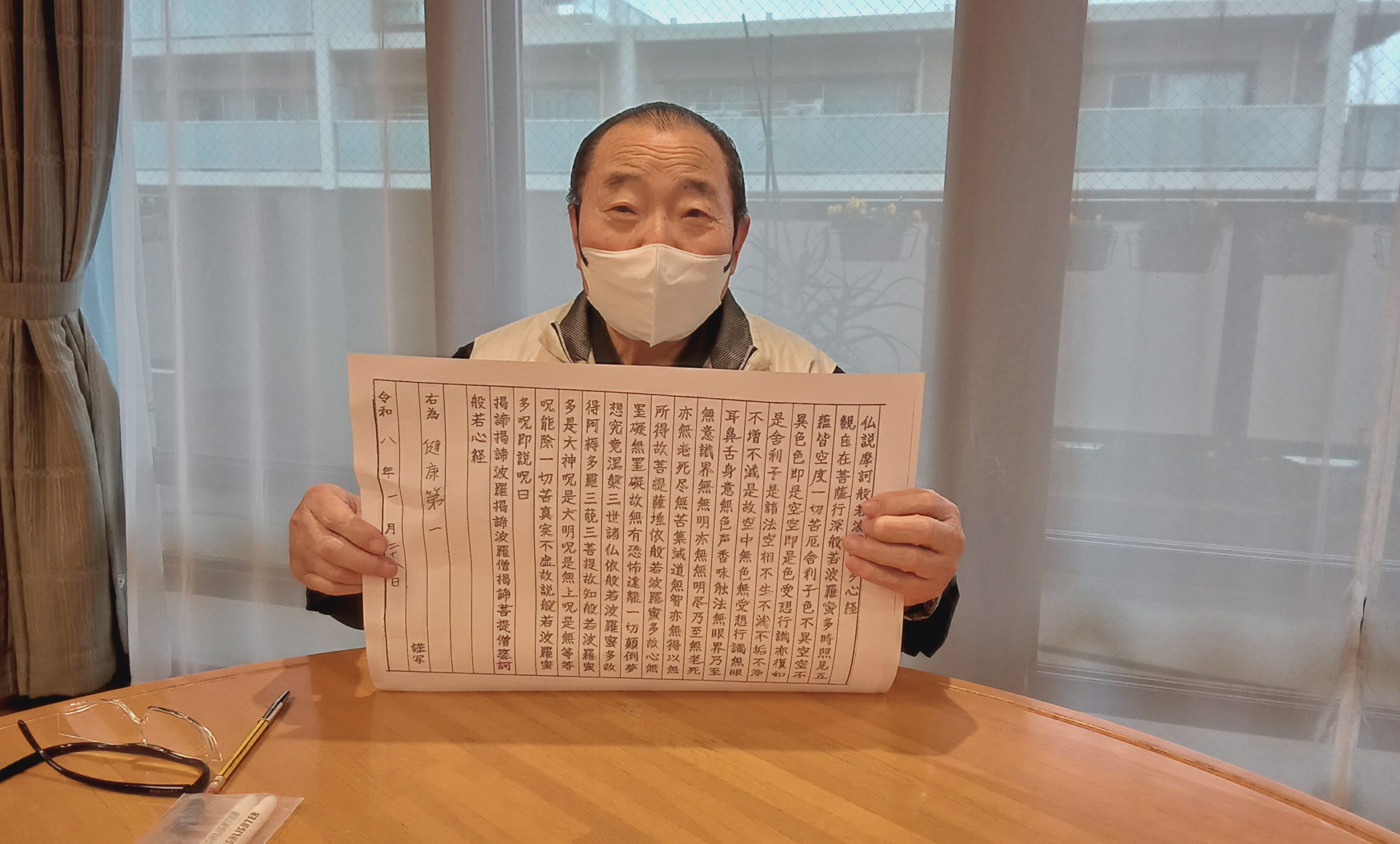 本日は、ケアハウスのご入居者と一緒に写経を行い、落ち着いた時間を過ごしました。