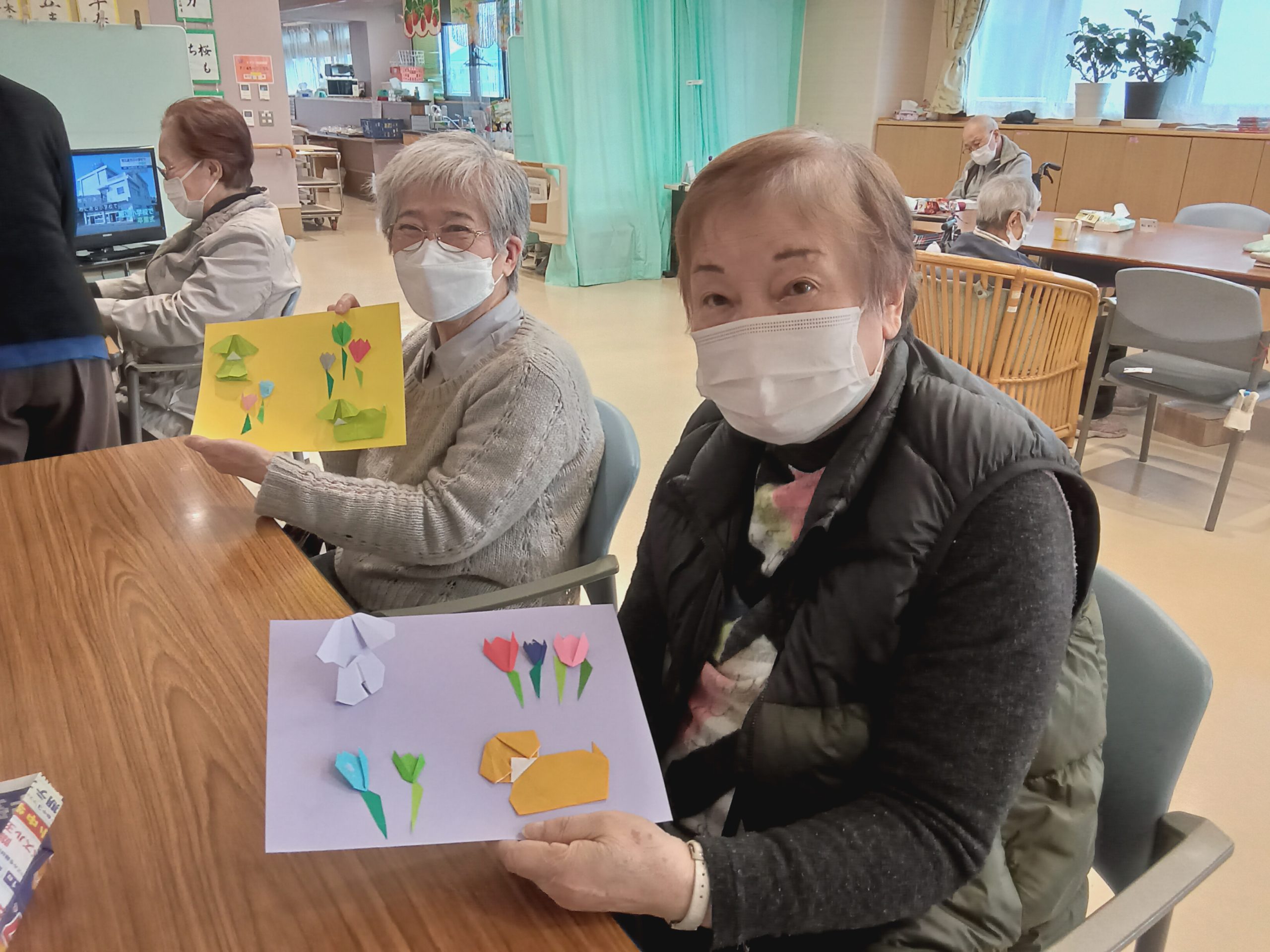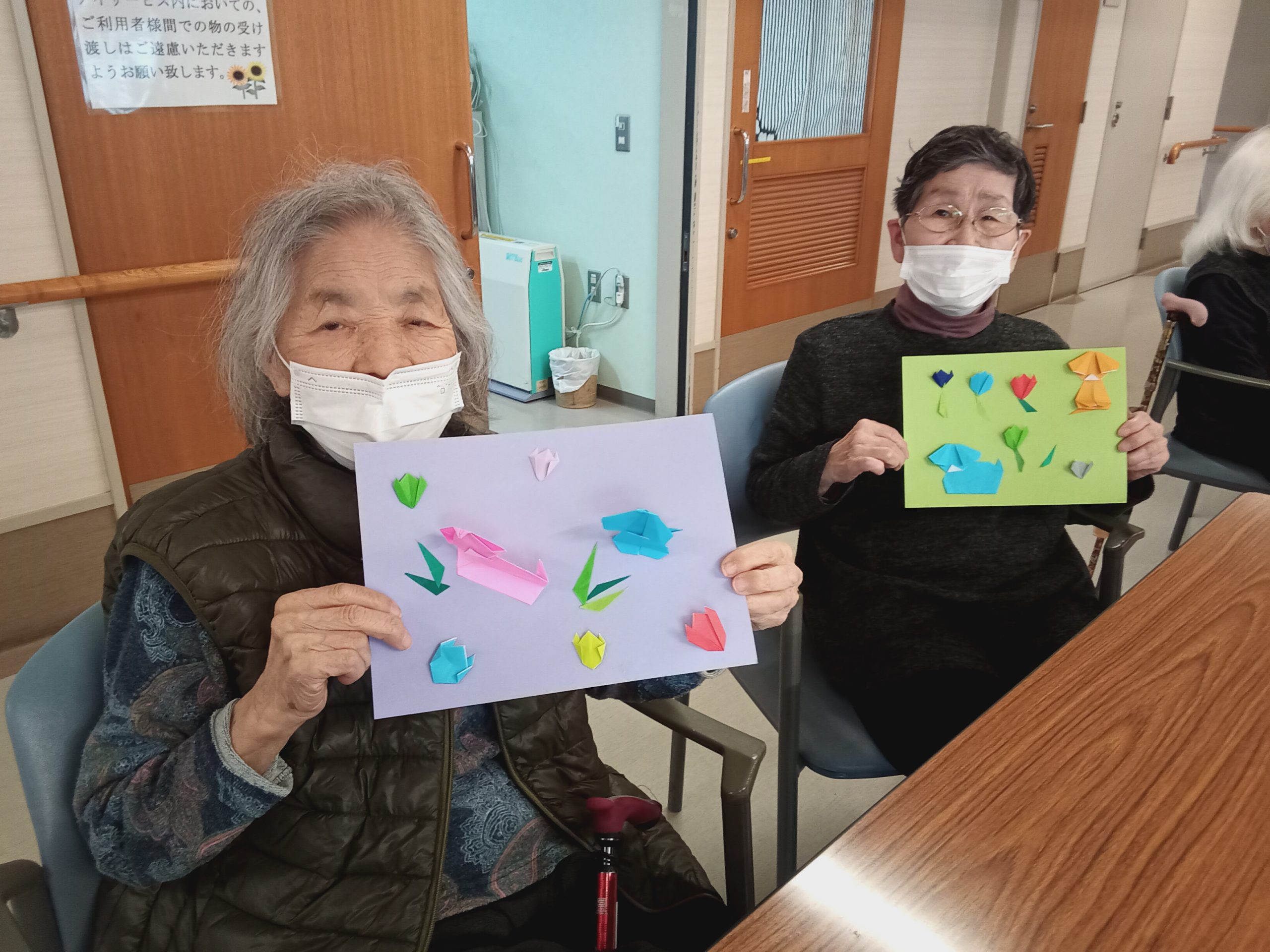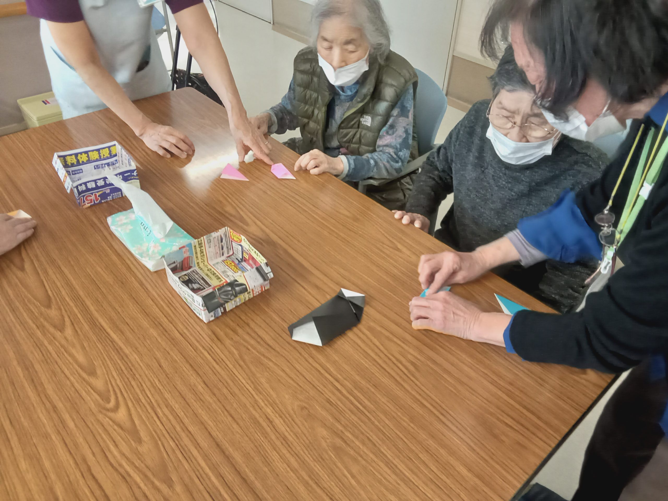 本日は折り紙教室を開催いたしました。 開始当初は「難しそう」と戸惑う声も聞かれましたが、いざ始まると皆様驚くほどの集中力で取り組まれていました。