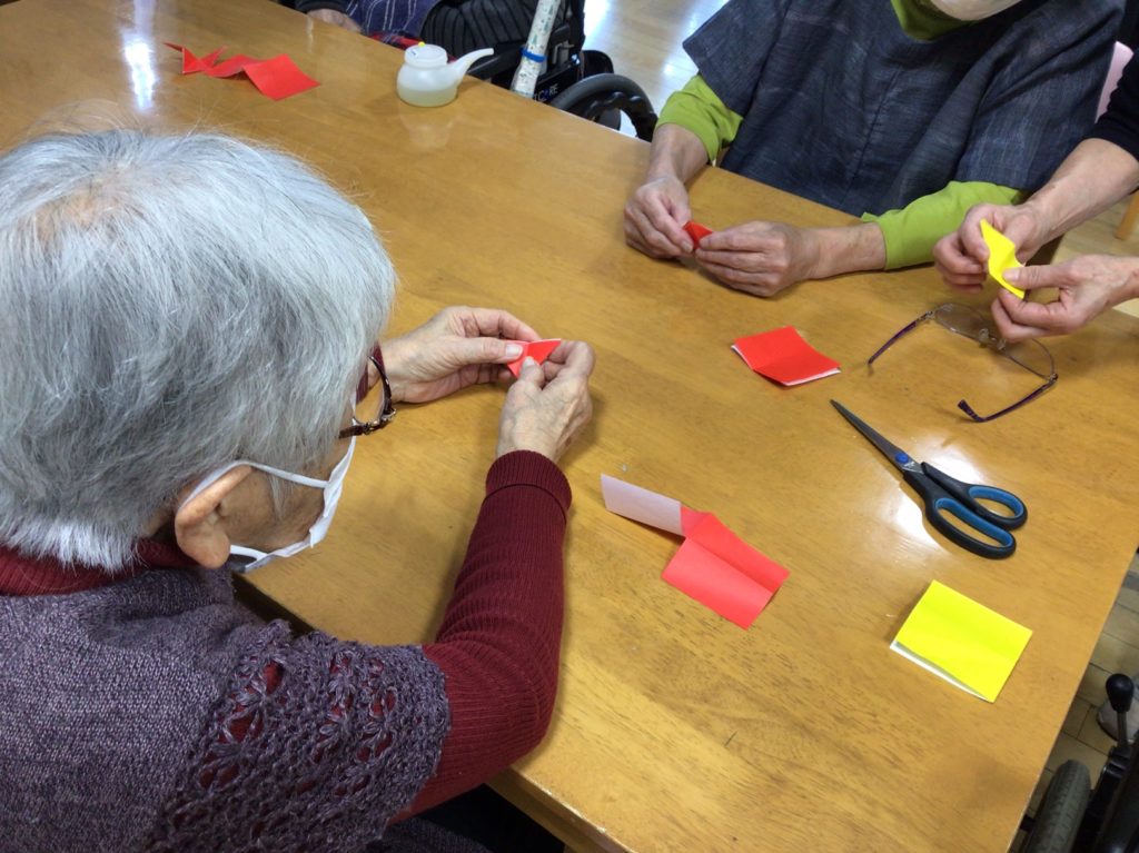 折り紙教室 2025.11.19デイサービス木曽 午後から折り紙教室が行われ、本日は鶴を作りました‼向かい合わせに紅白になる様にするなど、とても難易度が高かったのですが皆さん真剣な表情で取り組まれていました。 戻る