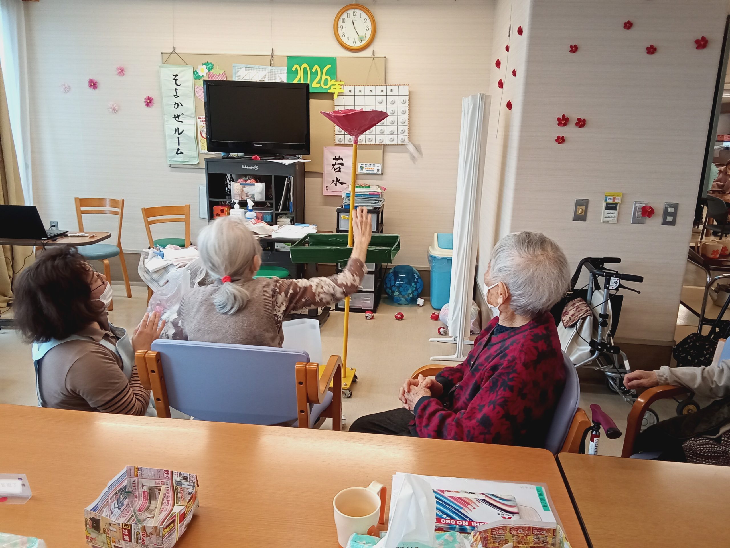 本日のレクは玉入れ!1点でも多く入れようと、皆様かなり気合が入っていました🔥 プレー中だけでなく、応援席からも『頑張って!』『あと少し!』と熱烈なエールが送られ、大盛り上がりの勝負となりました!