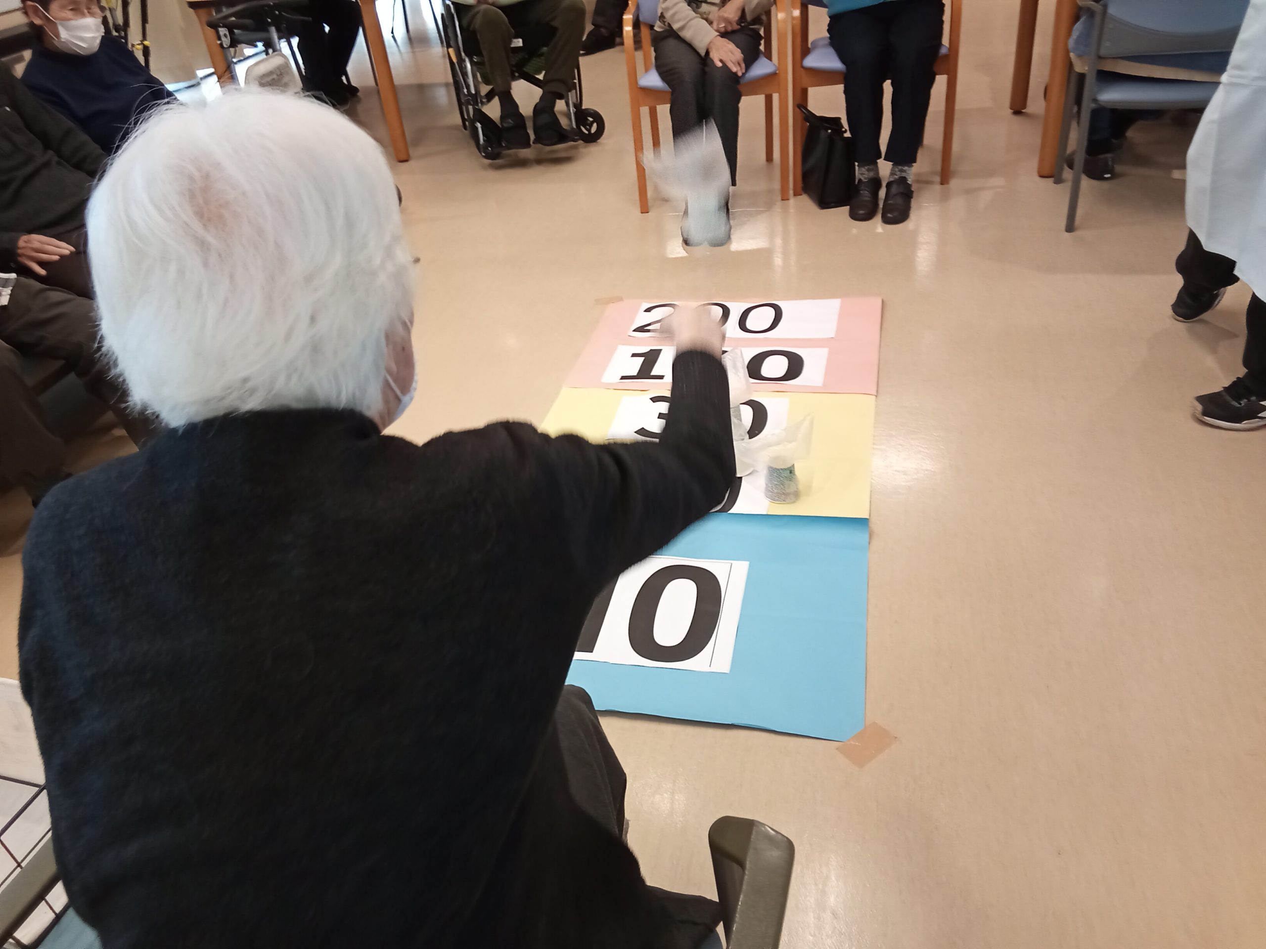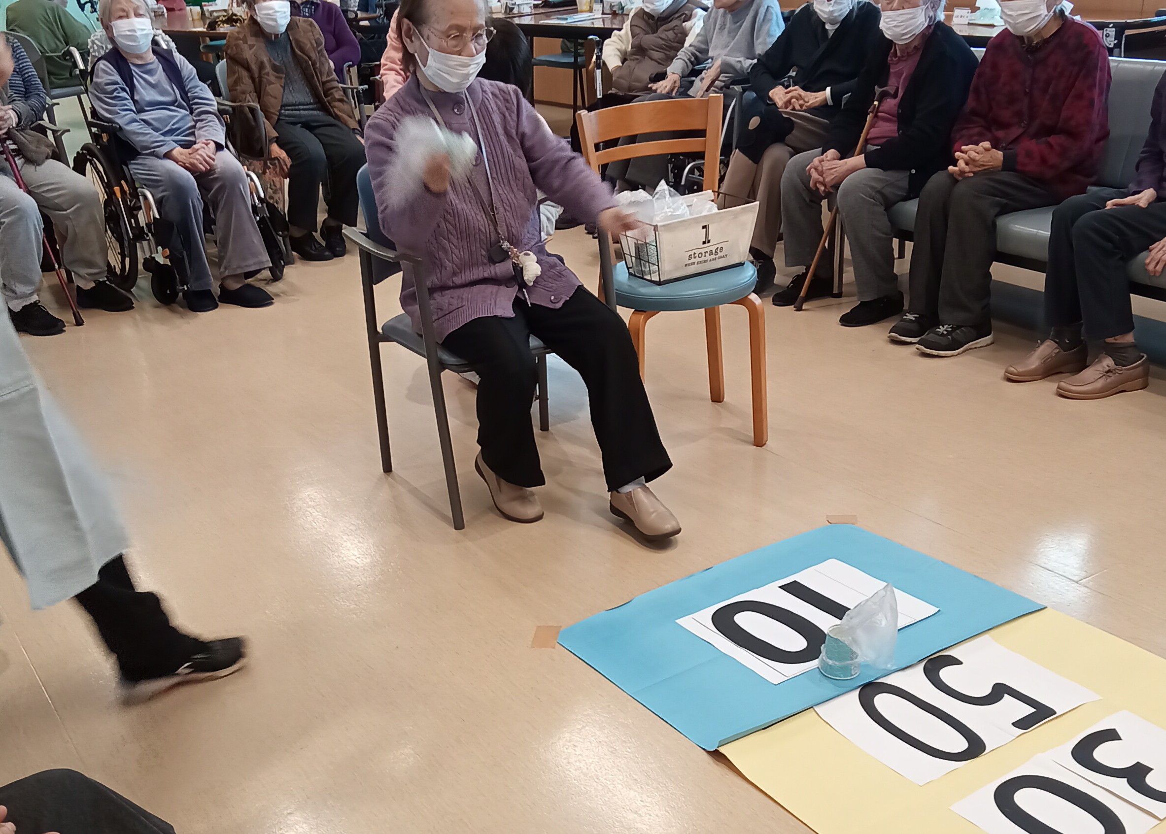紙コップを出来るだけ遠くに飛ばして、得点を競いました。