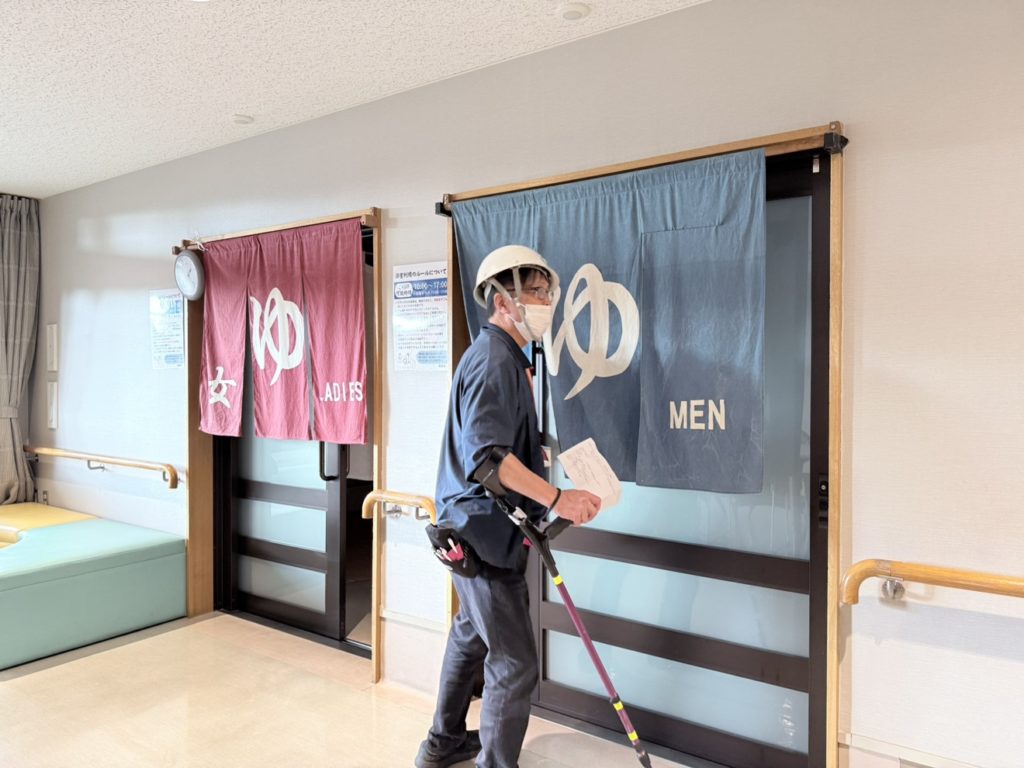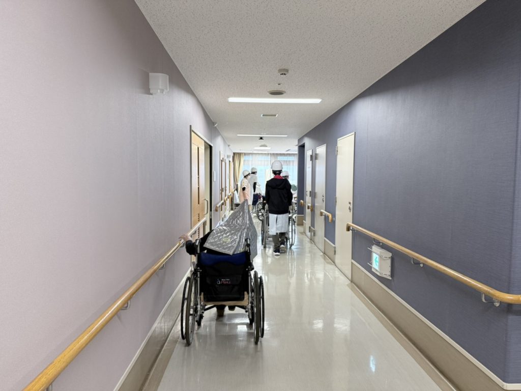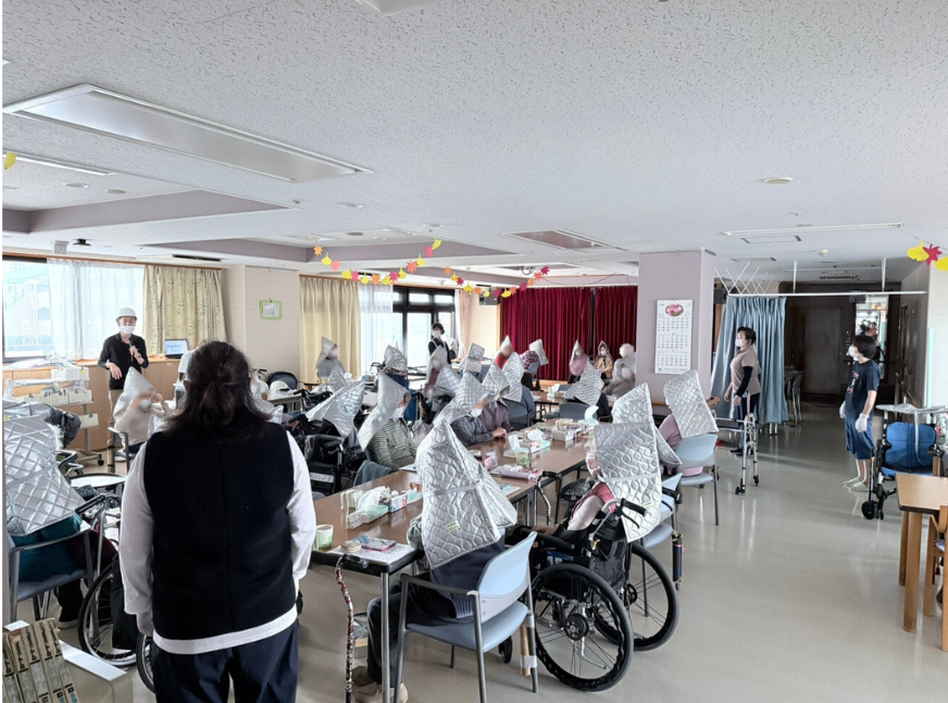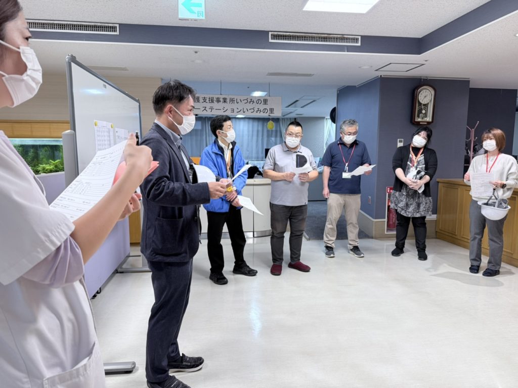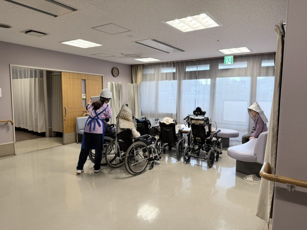 非常災害時にご利用者や職員の安全を確保するために行っております。職員同士でお互いに連携を図りながら、実際にご利用者にもご協力いただきました。