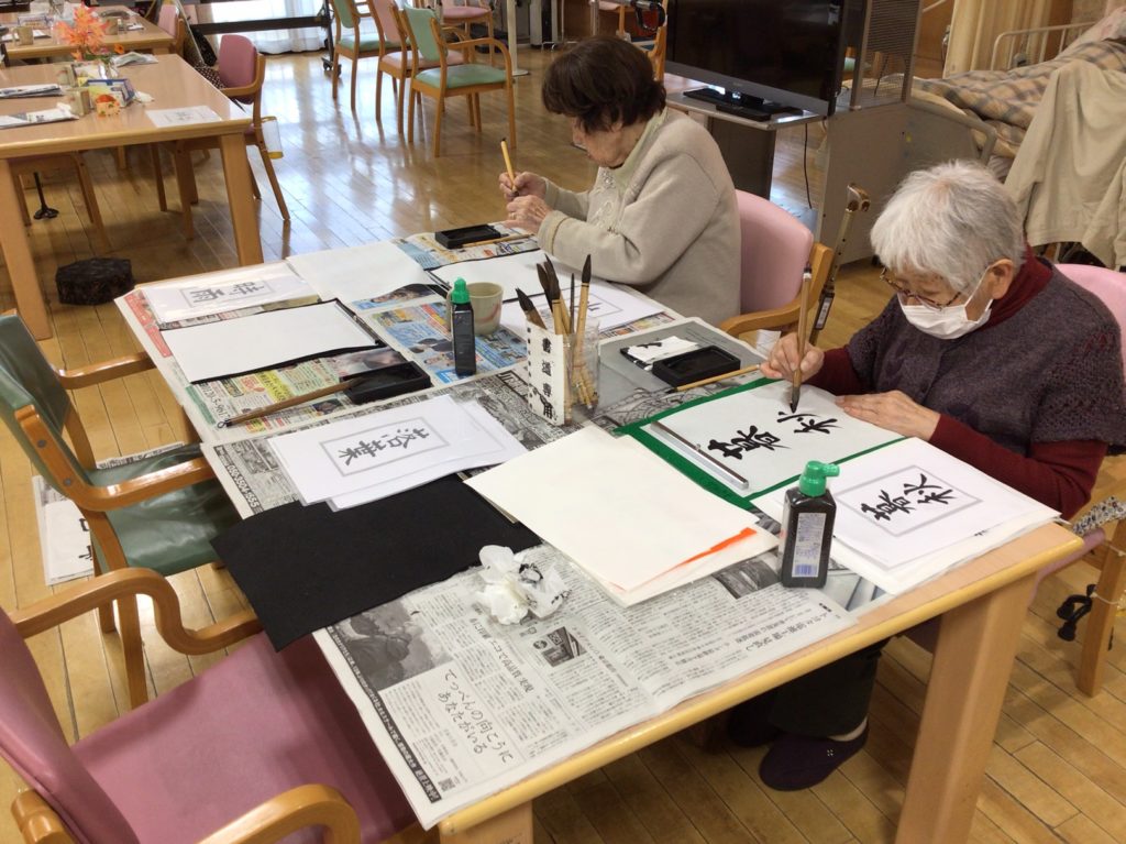 ご利用者が習字を書いて、デイサービス木曽内で掲示しています。 カラオケでは、職員が盛り上げ楽しまれていました♪