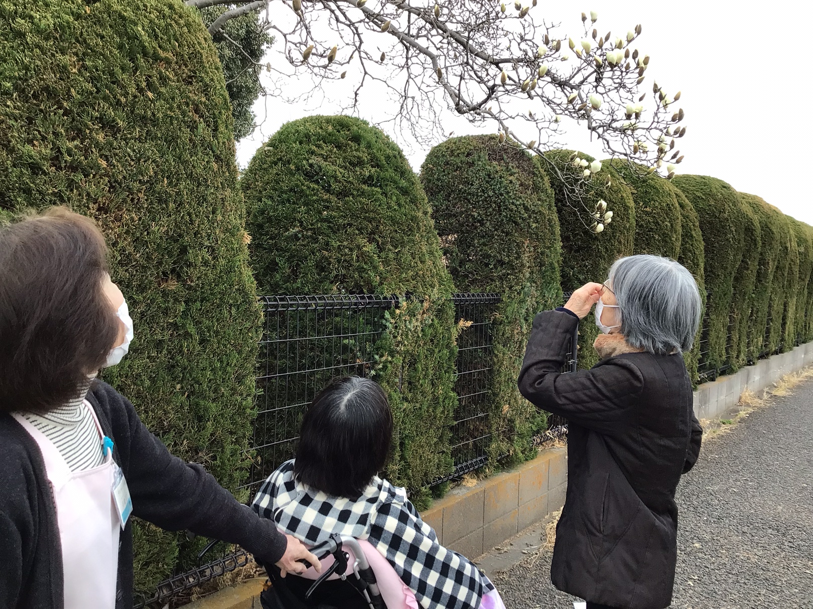 散歩では、近くの彼岸桜とこぶしの花が咲き始めており、