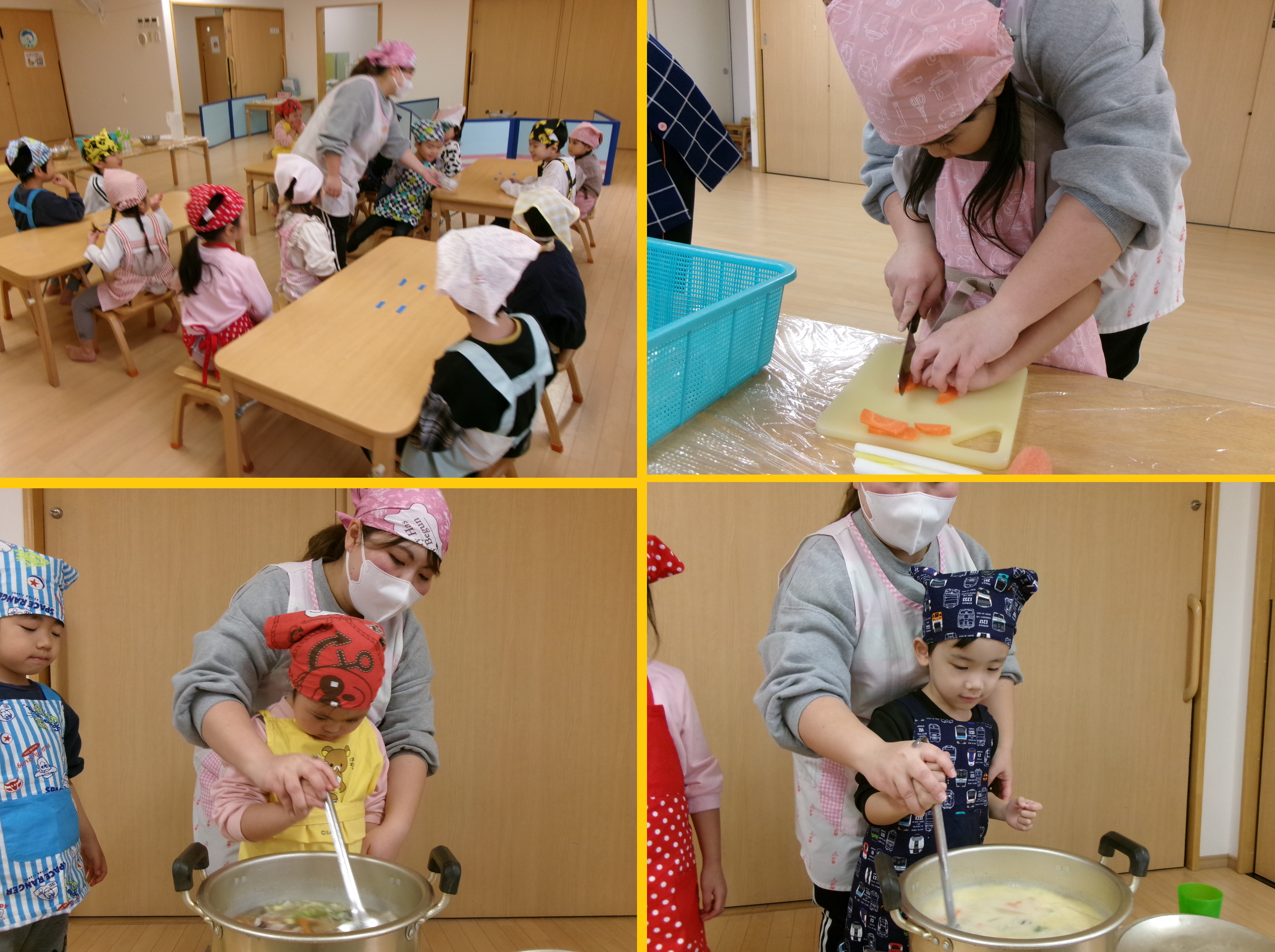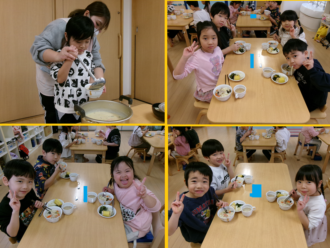 くじら組(5歳児)が豆乳みそうどんを作りました。