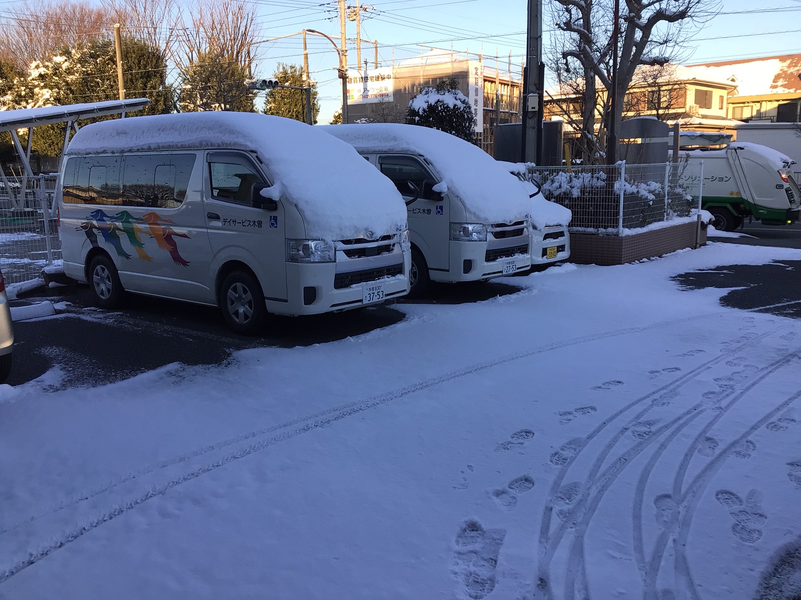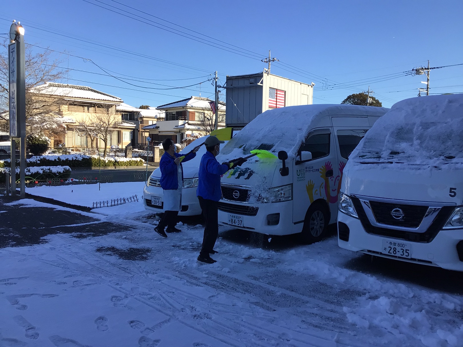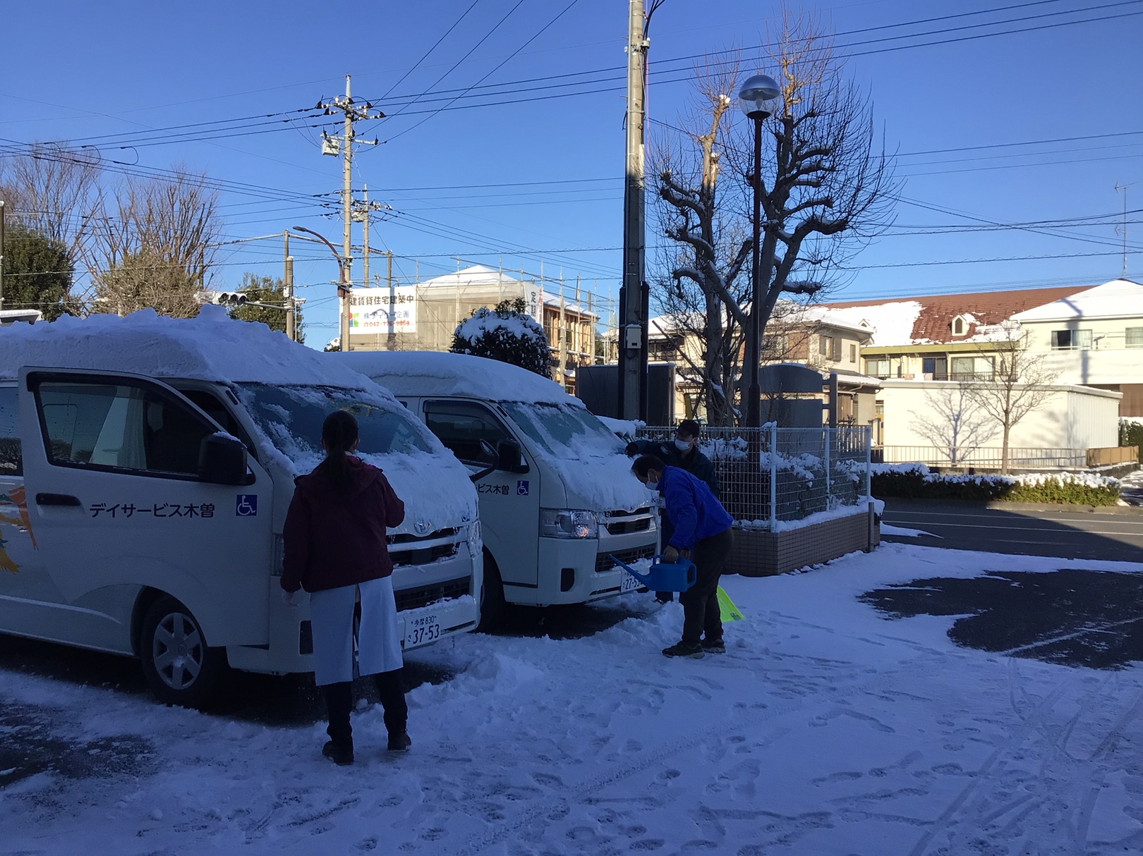 その後、職員・ドライバーとで送迎車と駐車場の雪かきを行いました。