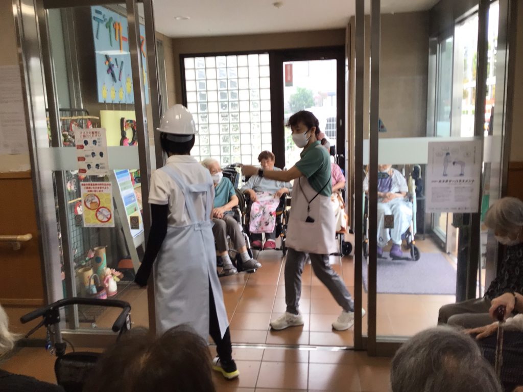 地震の後に、厨房からの出火を想定した避難訓練を実施しました。全員の無事を確認しています。