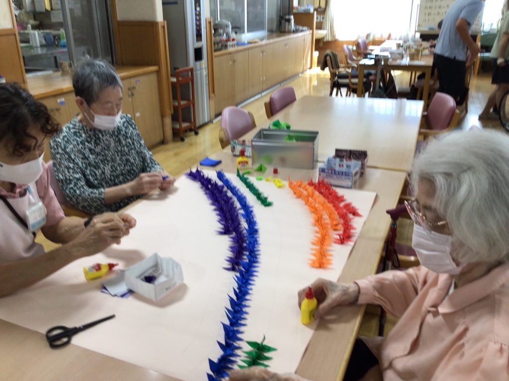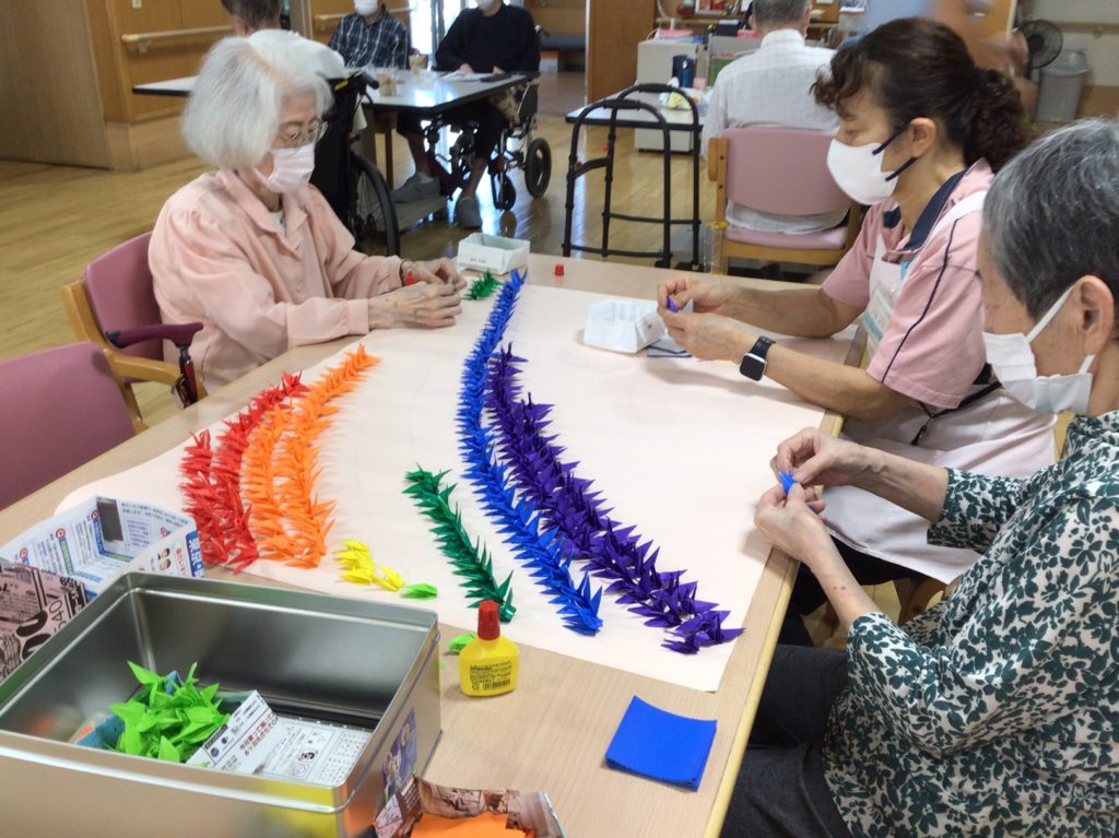 今日は利用者様と一緒に、保育園の子供達に送る壁紙作りをしました。 細かい作業でしたが、子供達の喜ぶ顔が見たいと一生懸命取り組まれていました。
