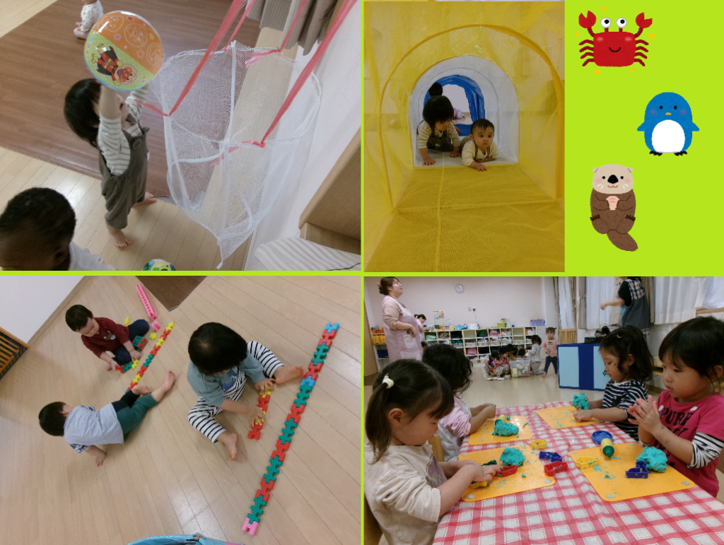 らっこ組(2歳児)は粘土とおままごとに分かれて遊びました。