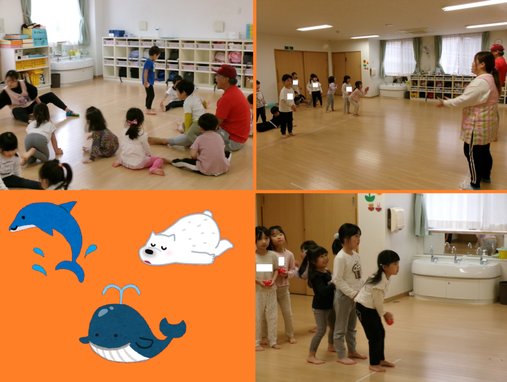 くじら組(5歳児)は玉入れの小さなボールでキャッチボールをしていました!👏