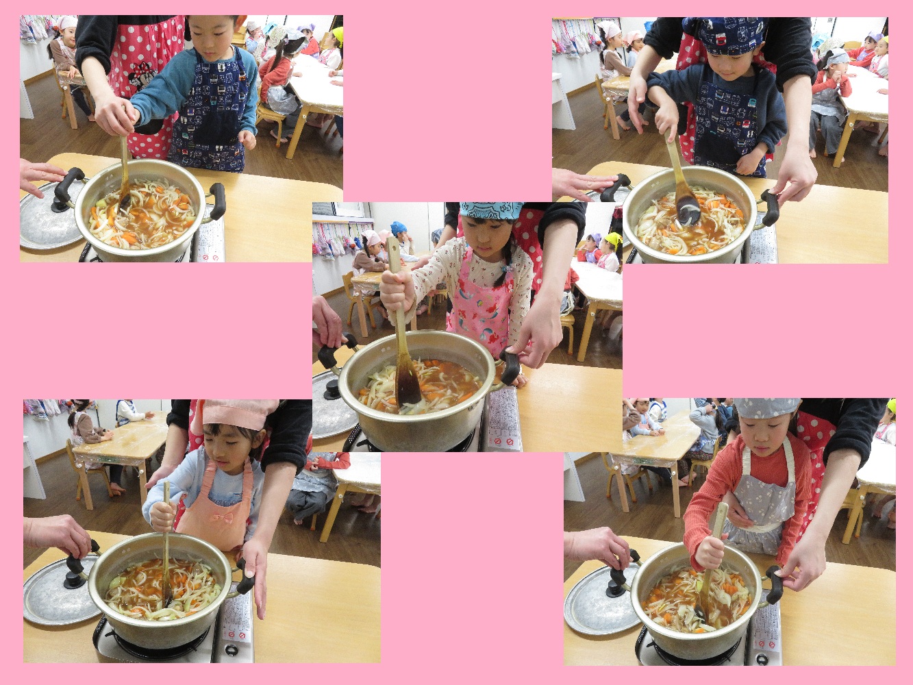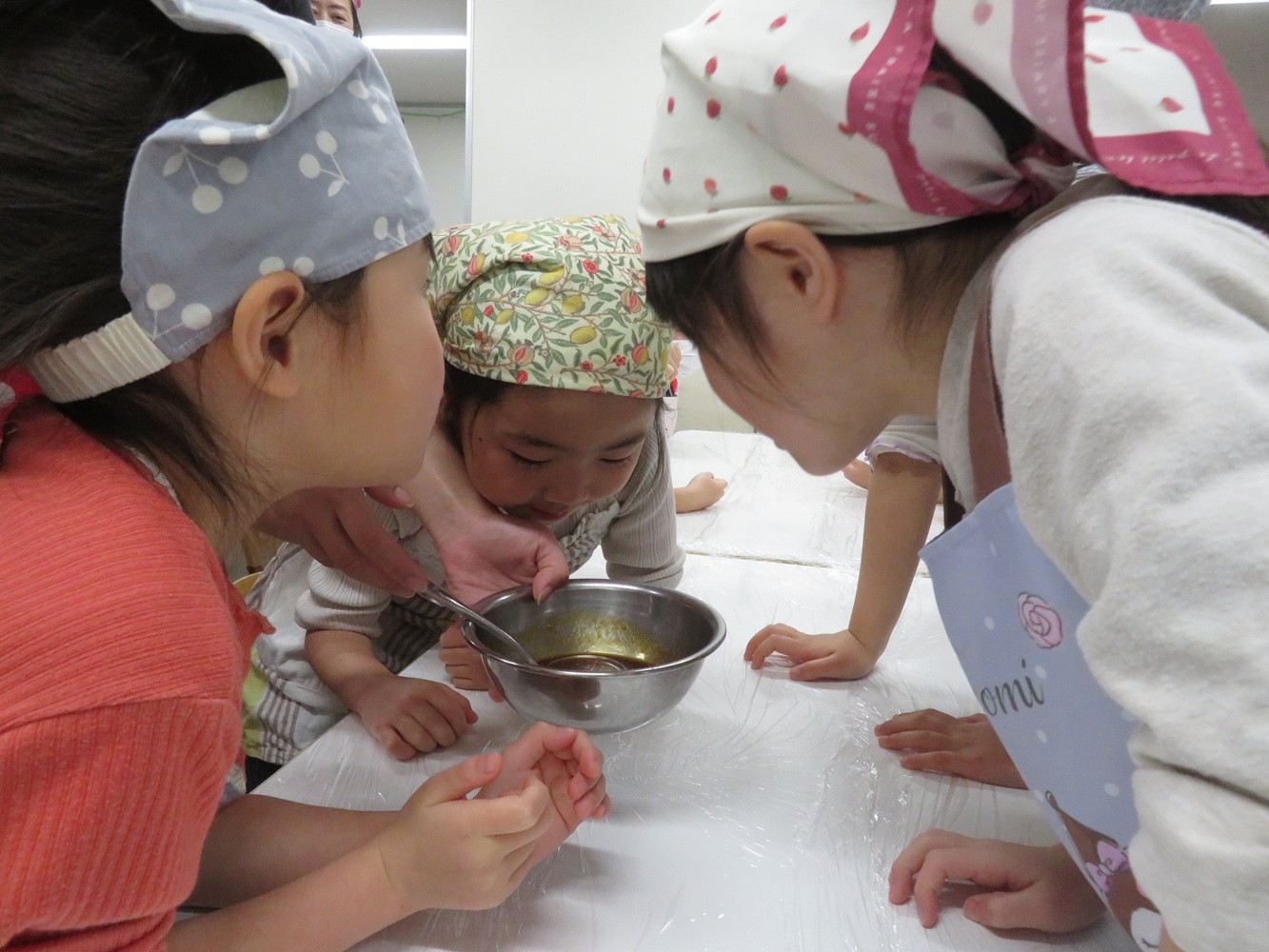 一人ずつ順番に、へらでかき混ぜました。「おいしくなあれ💕」