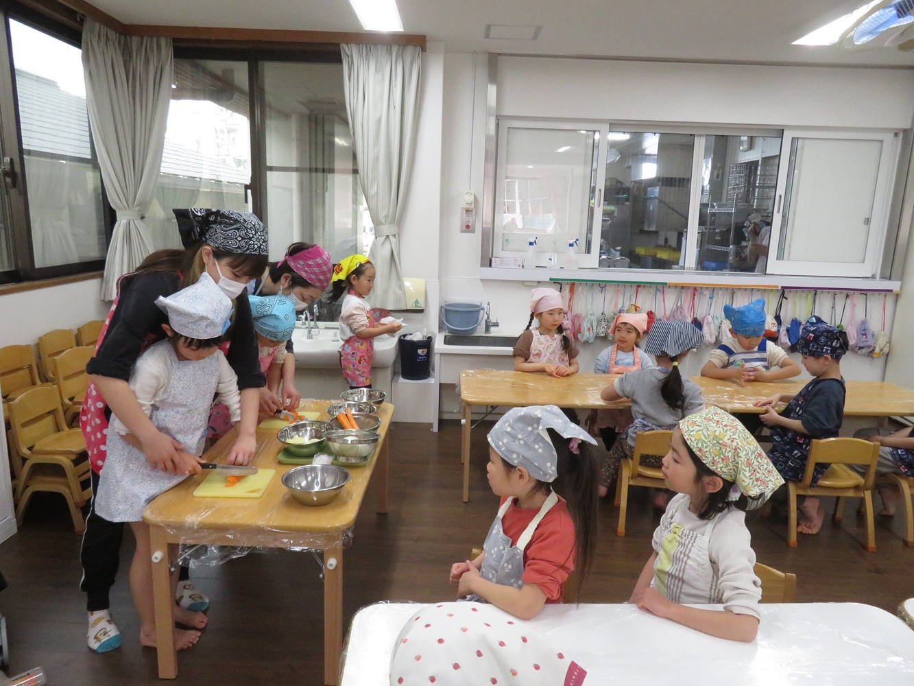「包丁の使い方が上手だね♬」と先生が声をかけていました。