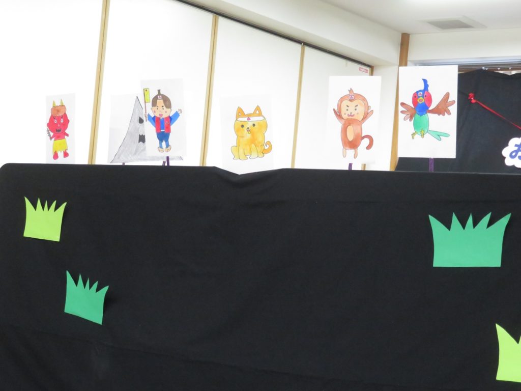 先生たちからの出し物は、『桃太郎』のペープサートでした🍑