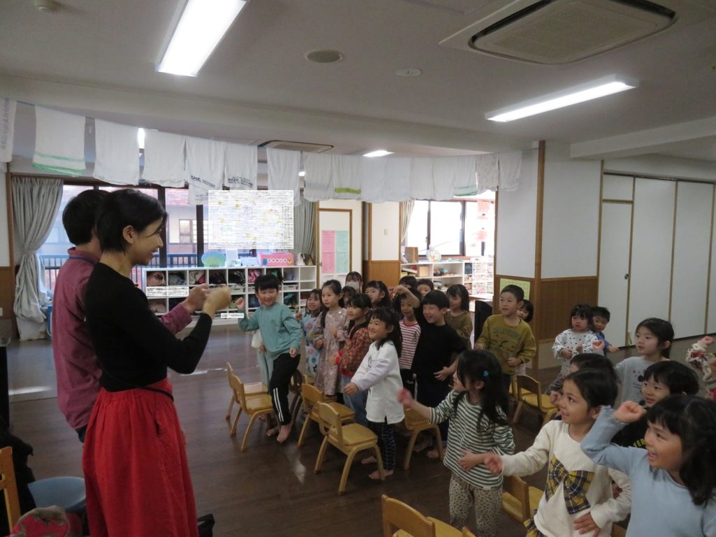 季節の歌では、焼き芋グーチーパー♪に合わせて保護者の方とじゃんけんポン!✊✌️🖐️