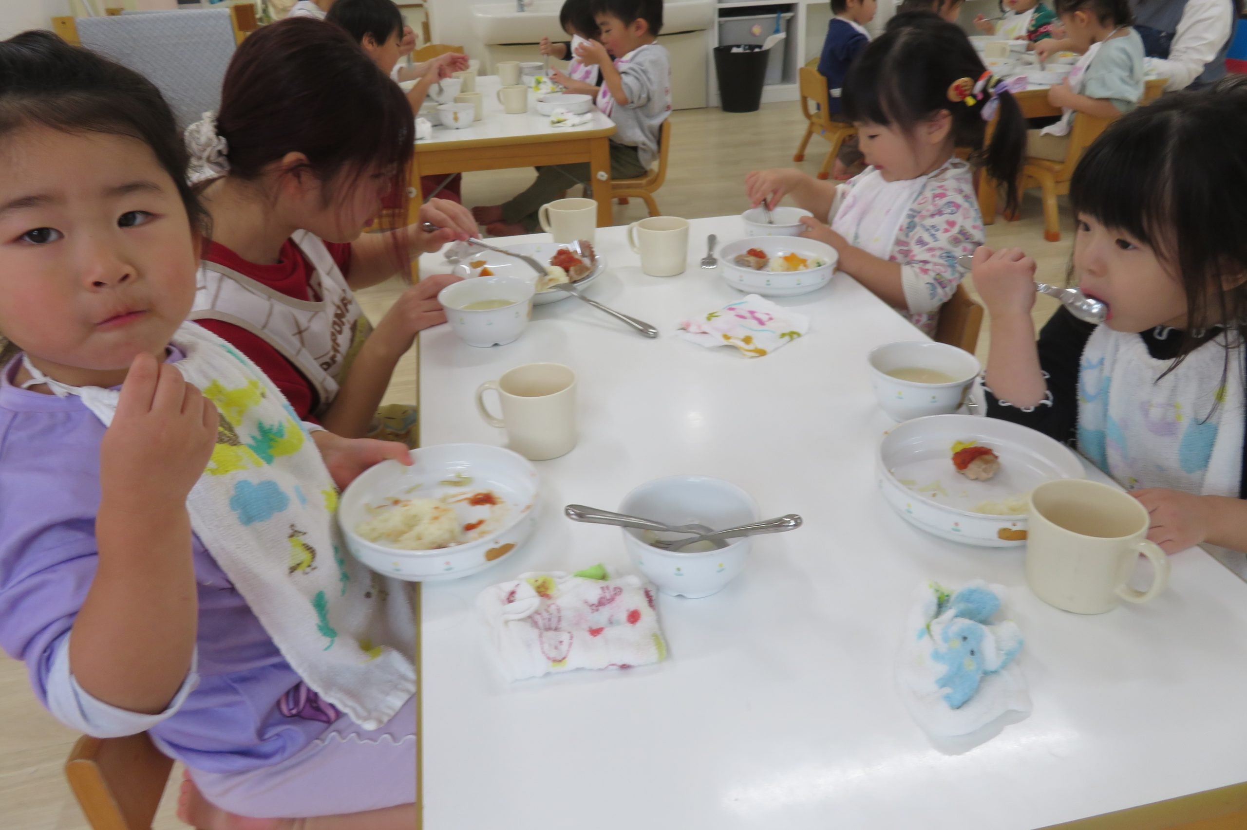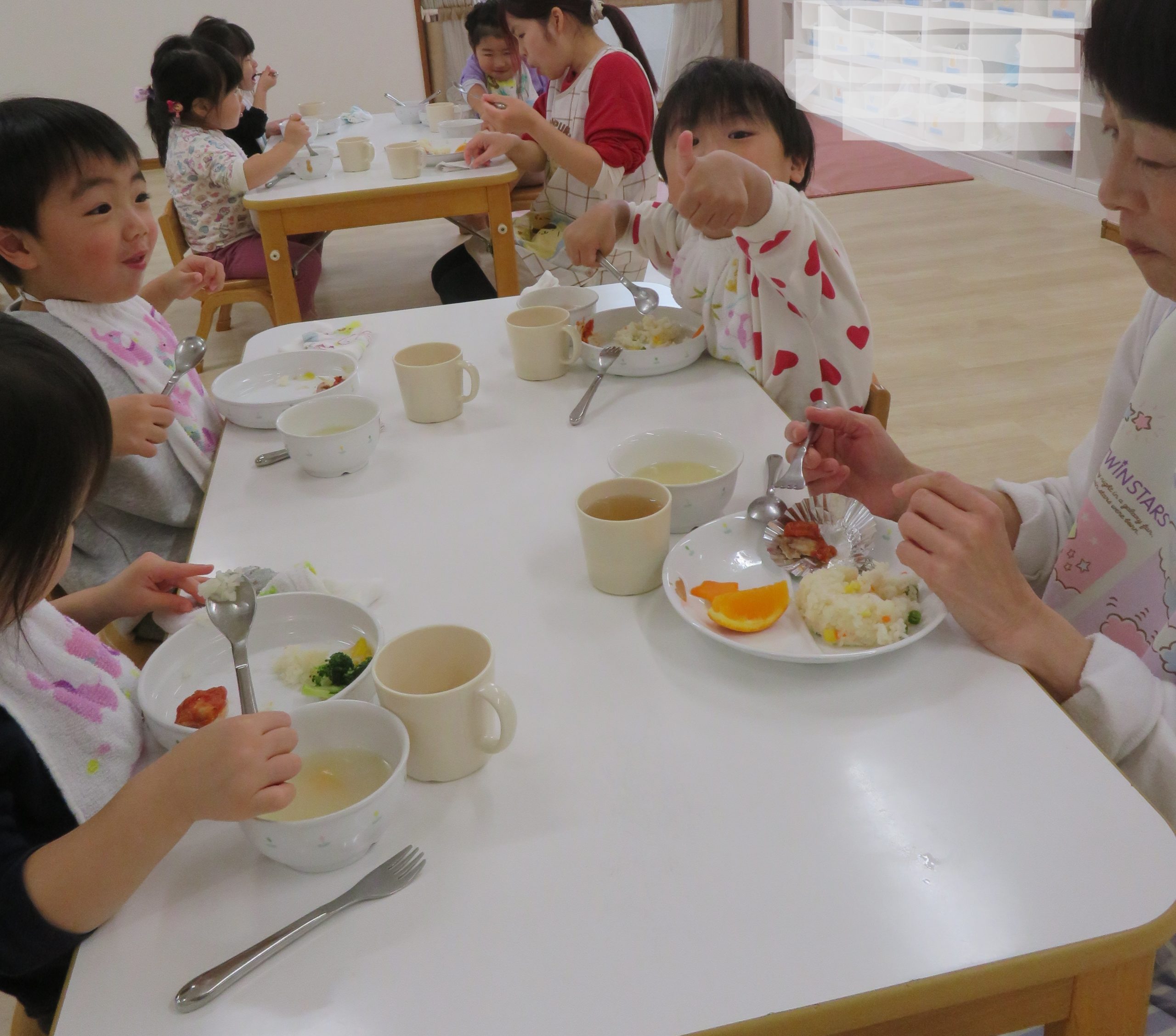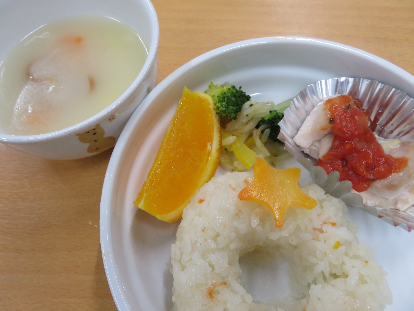 お昼は、リースピラフ!みんなで、おいしくいただきました♡