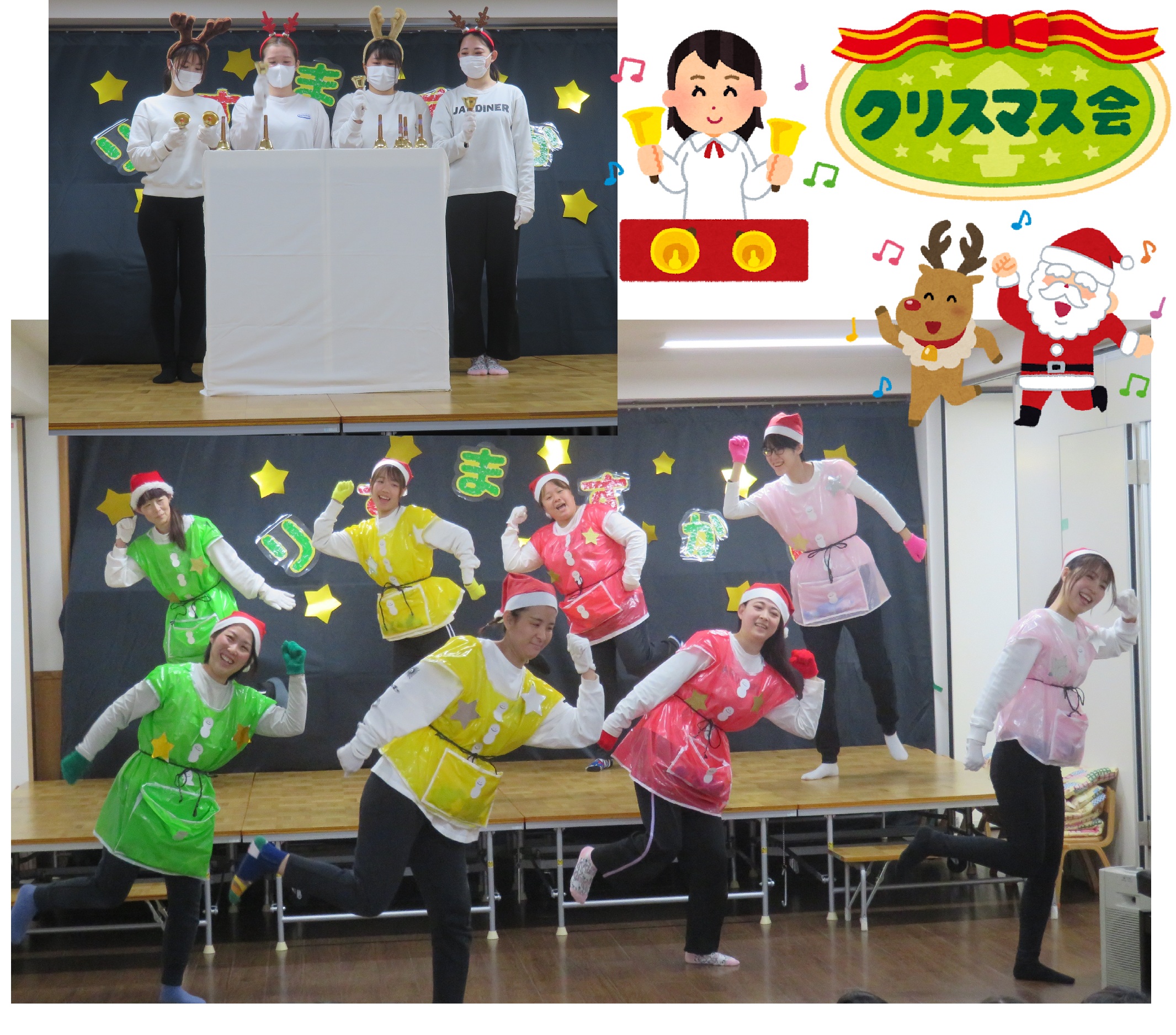 先生たちも、ハンドベルや『あわてんぼうのサンタクロース』のダンスで会を盛り上げていきます✨
