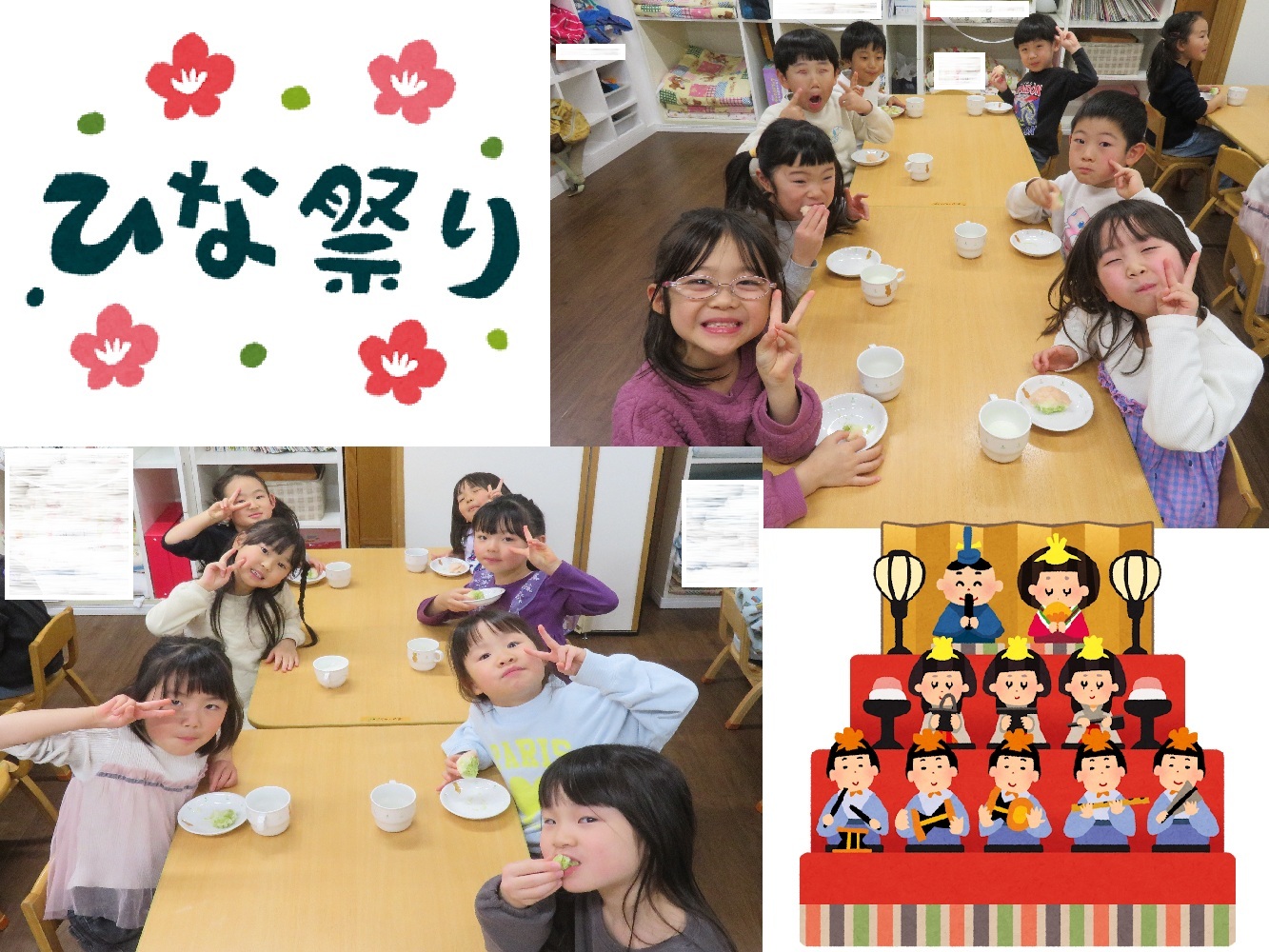 今日は乳幼児クラスそれぞれで、午後おやつの時間にひな祭り会が行われました!