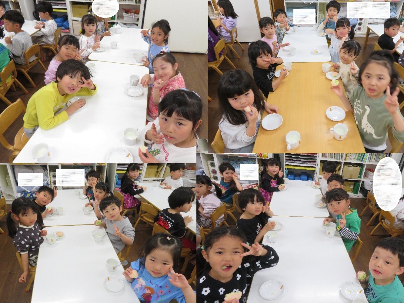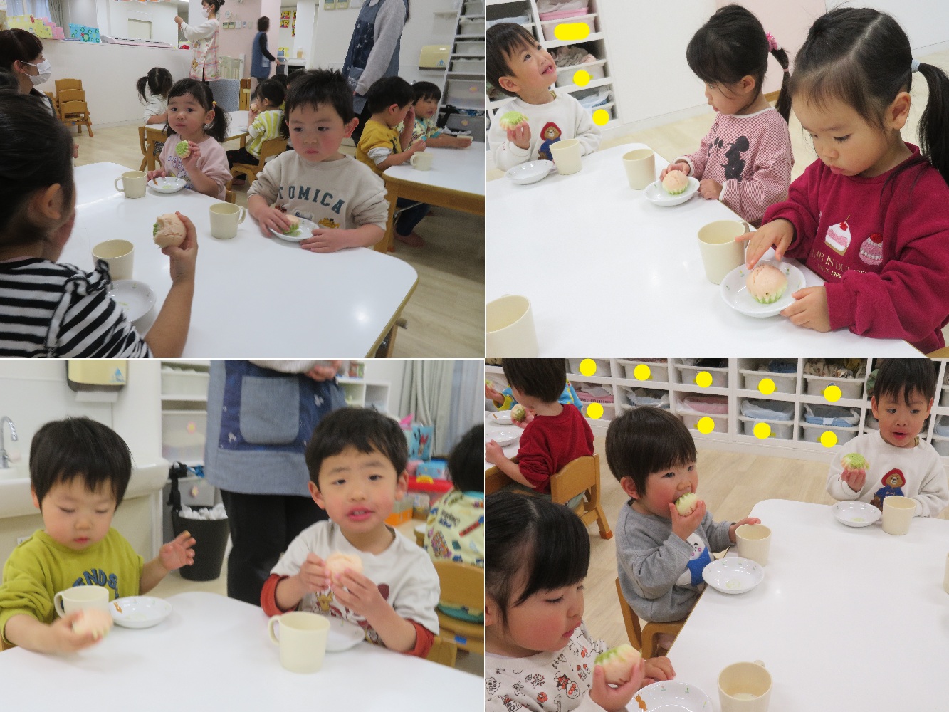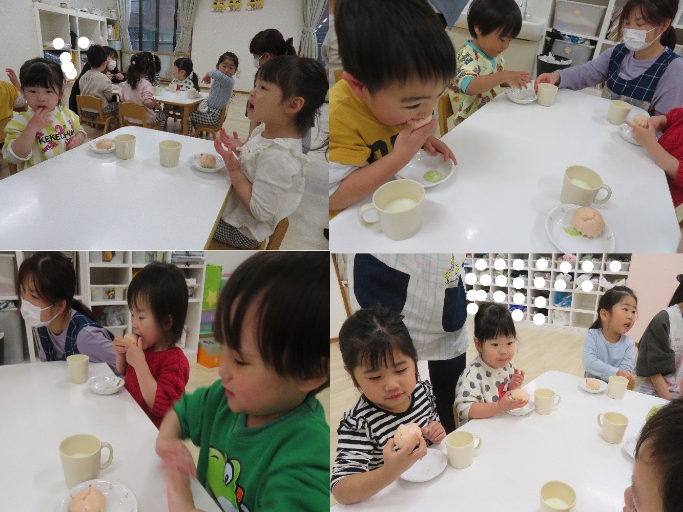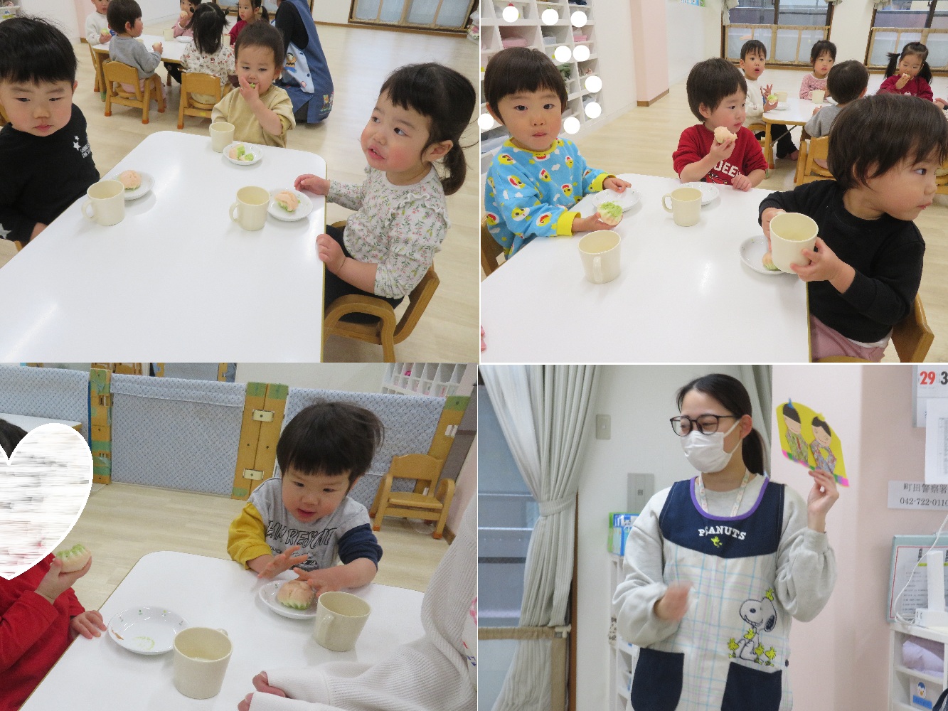 今日は乳幼児クラスそれぞれで、午後おやつの時間にひな祭り会が行われました!