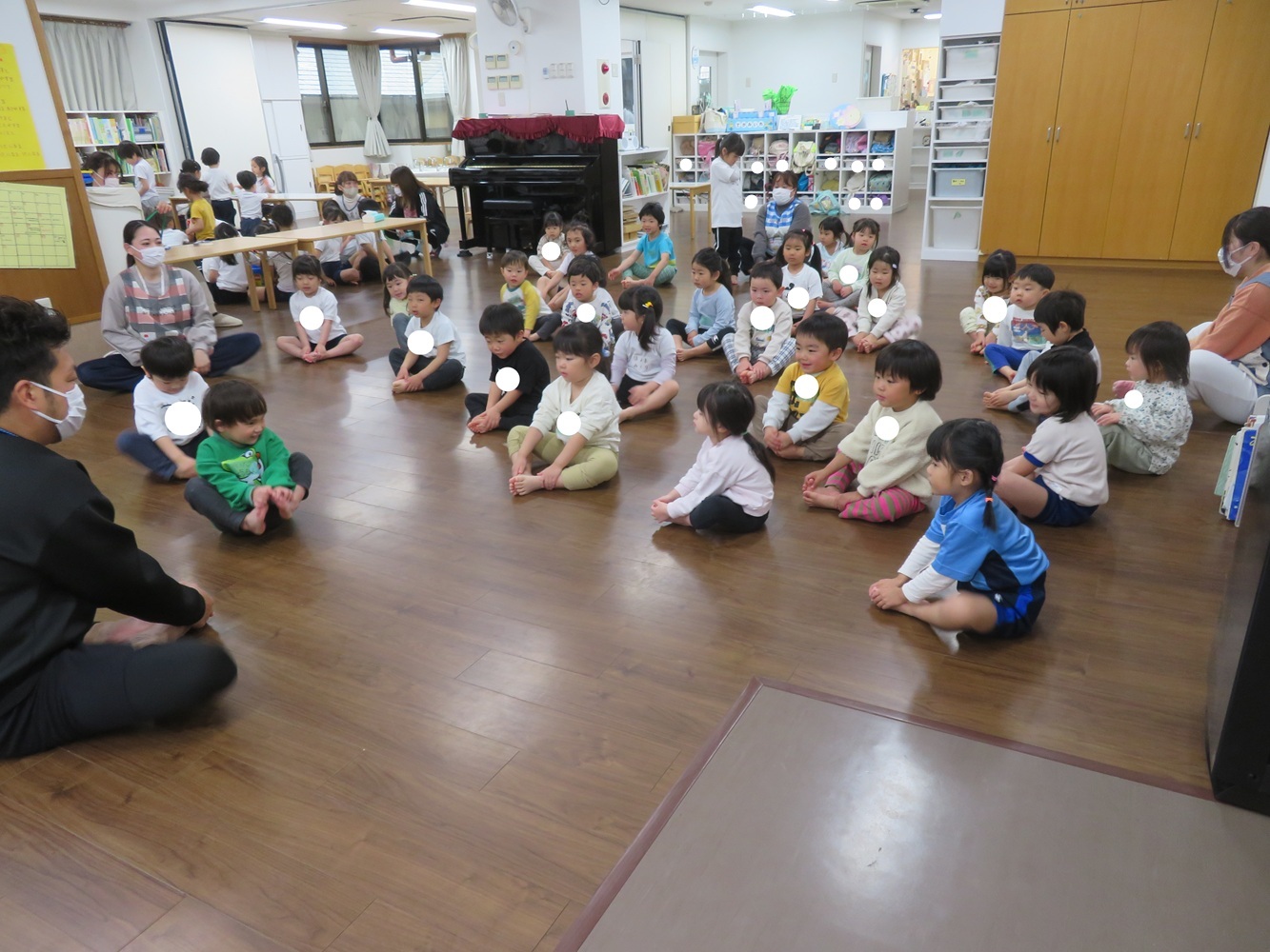 講師の先生に少し緊張していましたが、はな組の子ども達がリードして楽しく進んでいきました。