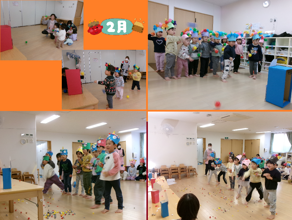 みんなで節分の会をしたあとは各クラスに戻って豆まきをしました。