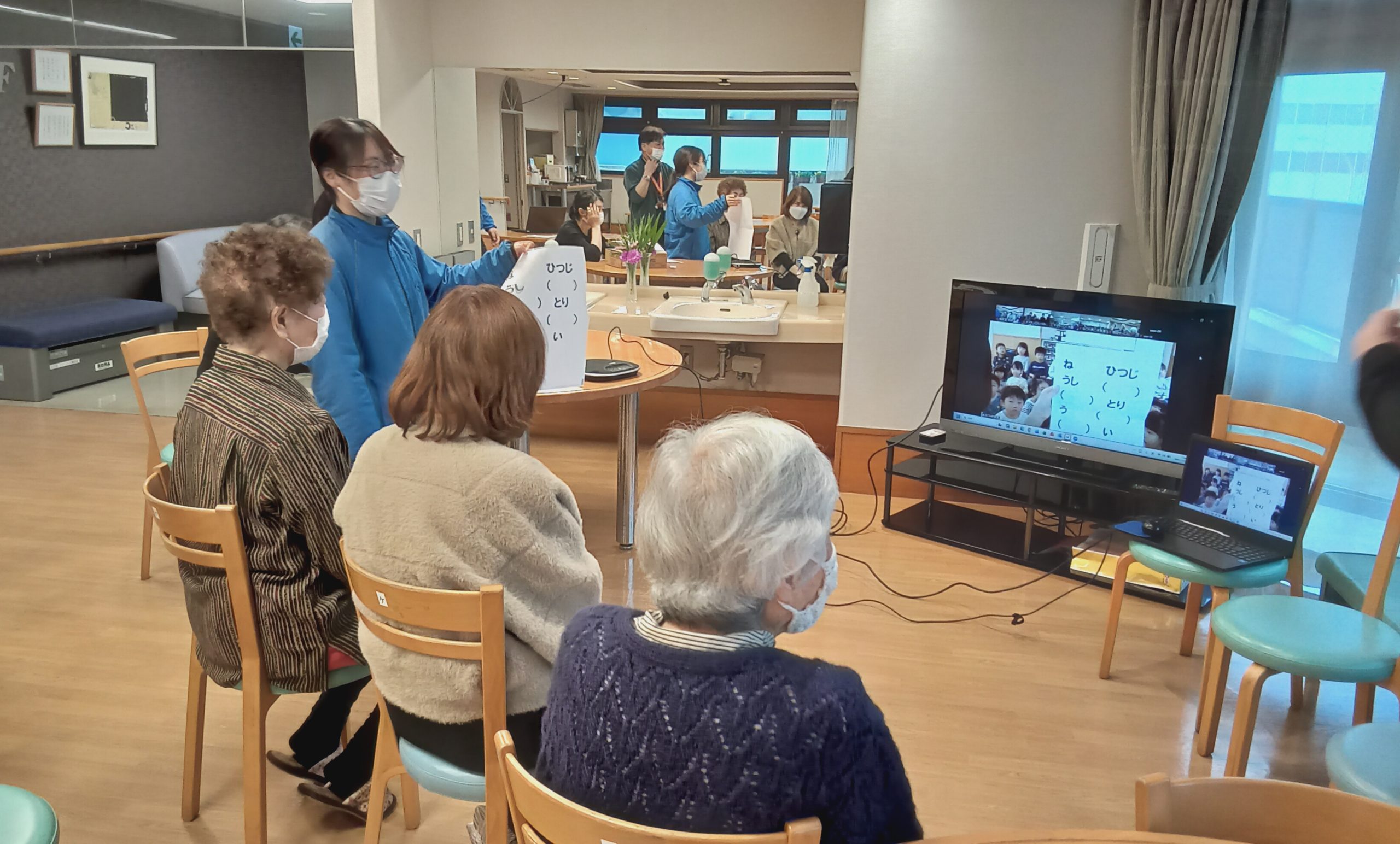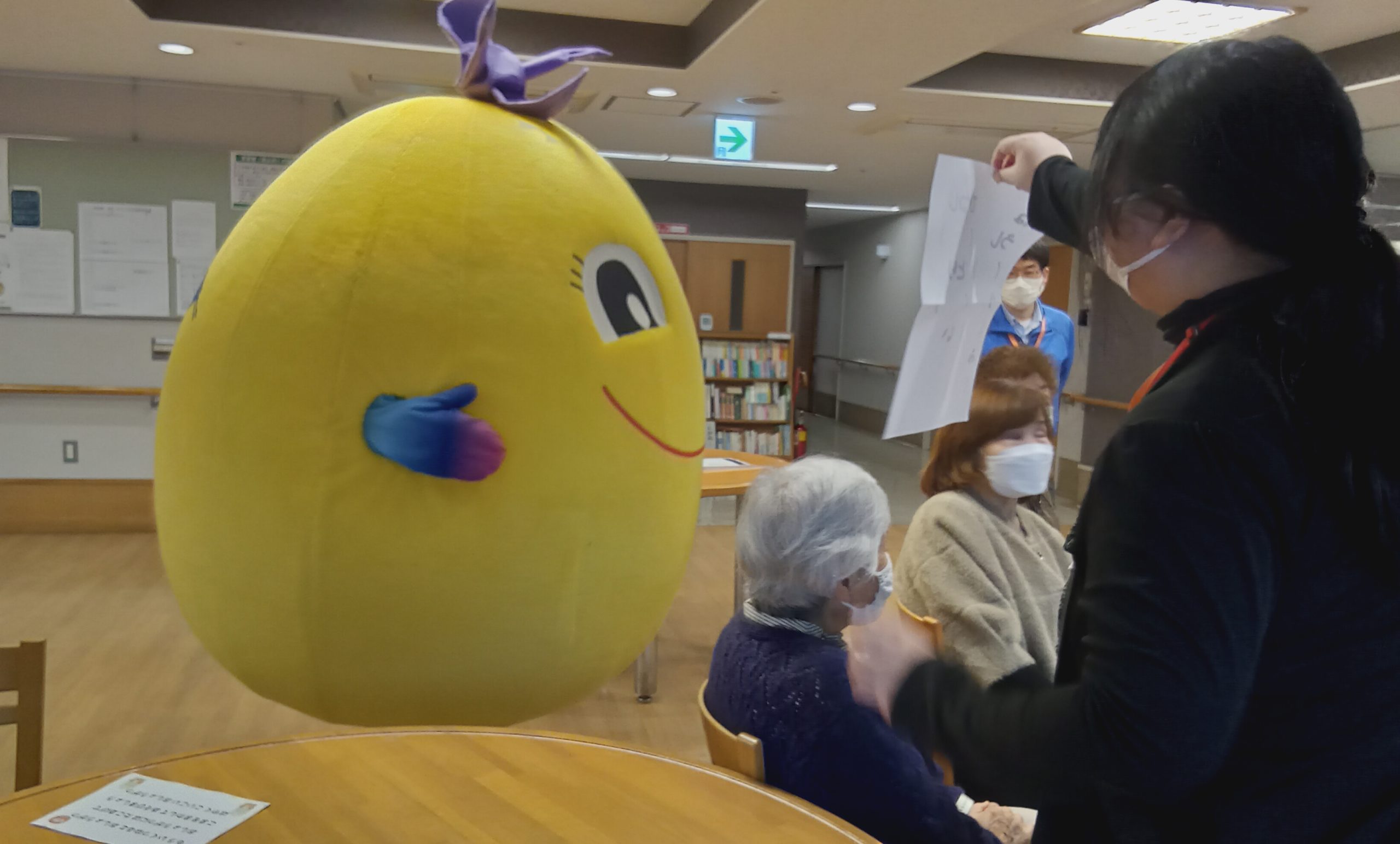12月の交流会は『干支クイズ』を行いました。並べられた十二支のうち隠されている干支を答えていただくのですが、皆さまスラスラと回答されていました。なごみんも一緒にクイズに挑戦していました。
