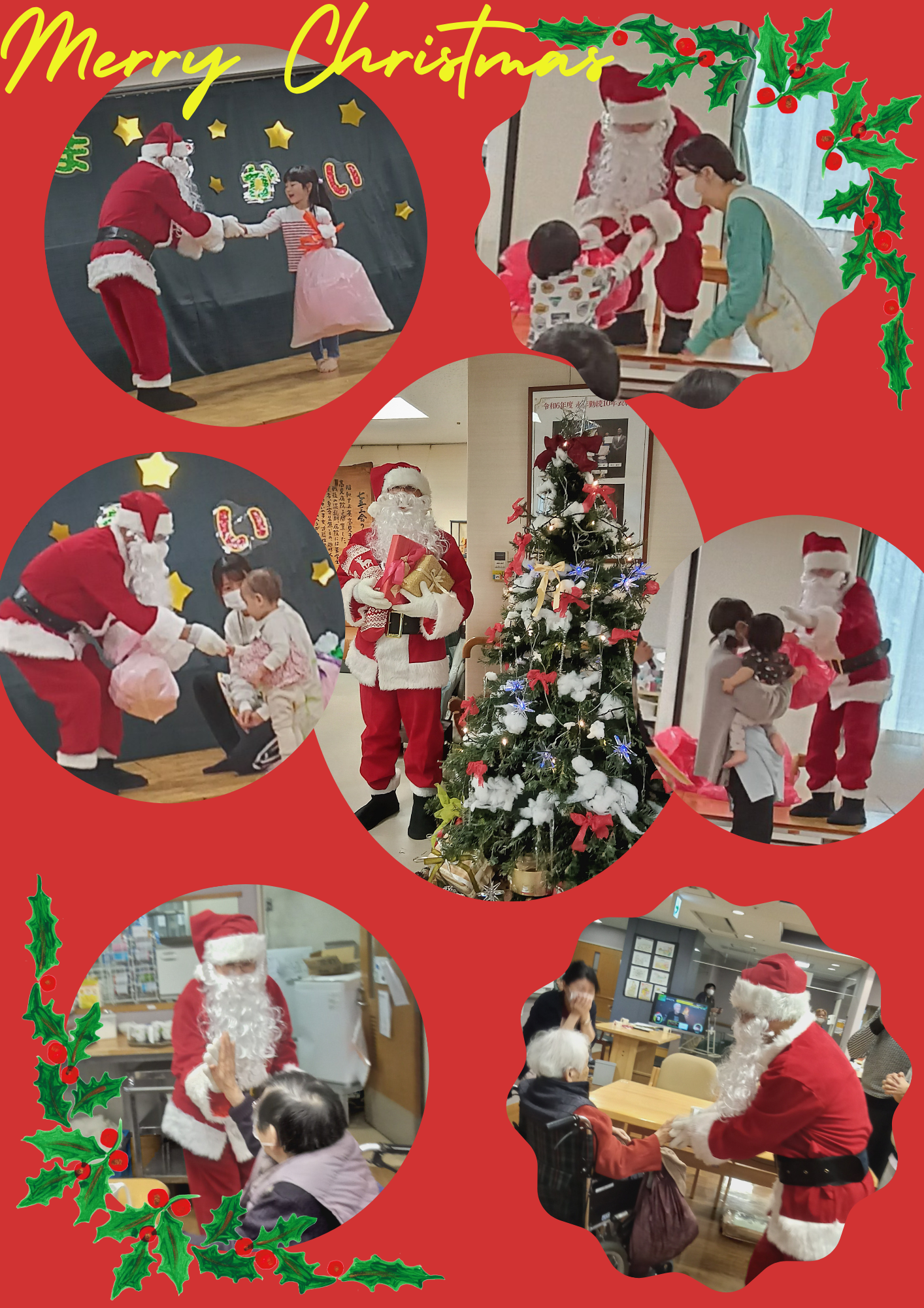 今日はクリスマス。なごみ保育園となごみ第二保育園のクリスマス会の途中に、なんとサンタクロースが登場!